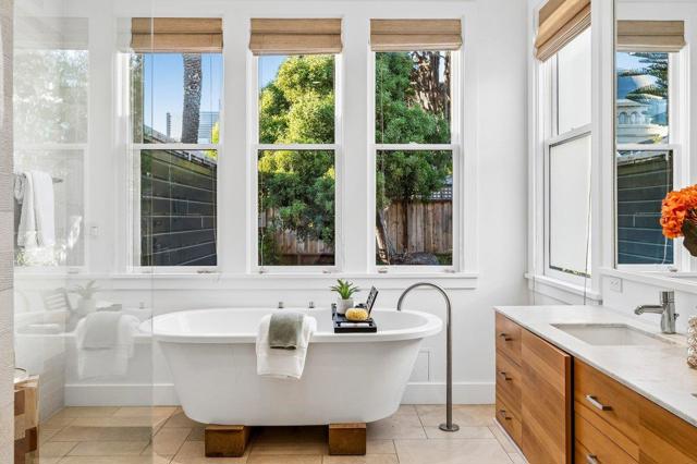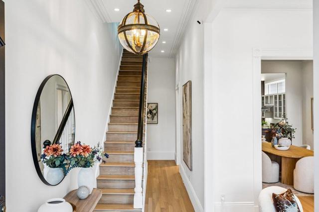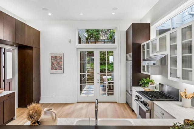 Welcome to 2148 Pine Street! Located in Lower Pacific Heights, this exceptional Victorian home offers a seamless blend of period details and modern upgrades. Features include high ceilings, crown moldings, and a skylight, complemented by a fully remodeled kitchen and bathrooms with a refined modern aesthetic. Additional highlights include hardwood floors and in-ceiling speakers throughout. Spanning three levels, the home features a well-designed open layout with 4 bedrooms and 3.5 beautifully updated bathrooms. The remodeled kitchen is equipped with premium Wolf and Miele appliances, seamlessly connecting to the main living areasideal for both everyday living and entertaining. Completing the home is a walk-out garden with expansive premium decks, fully upgraded with luxurious materials and high-end finishes, offering a private, resort-like outdoor retreat perfect for entertaining or relaxing. All just two blocks from the shops, dining, and amenities of both Fillmore Street and Post Streetthis is a truly rare offering that combines scale, character, and modern comfort!