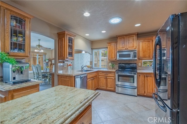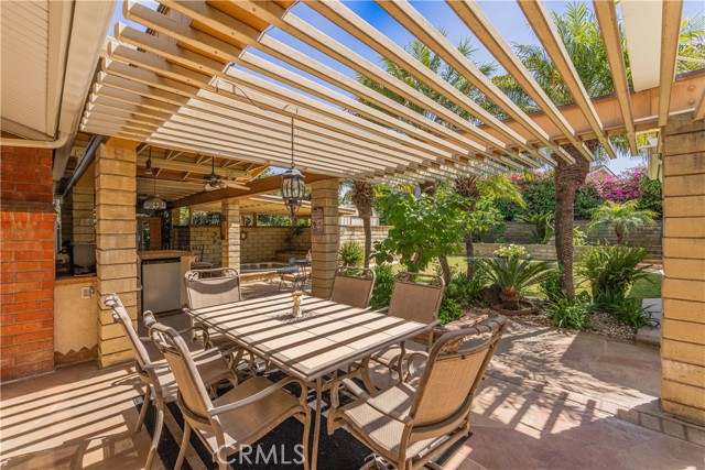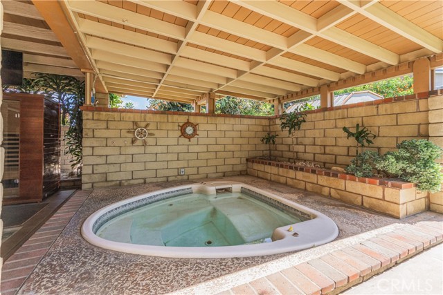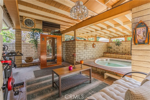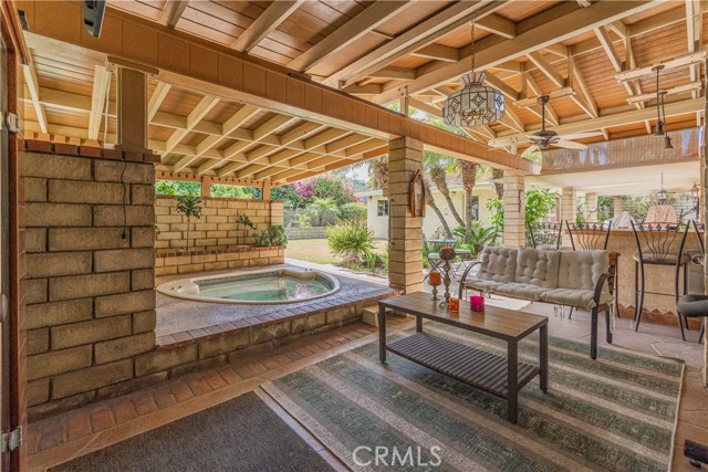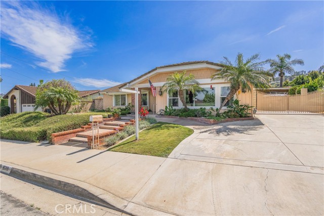 Exceptional single-story home nestled in one of Hacienda Heights’ most sought-after neighborhoods. This beautifully maintained residence offers 3 bedrooms, 2 bathrooms, and approximately 2,062 square feet of thoughtfully designed living space, showcasing impeccable curb appeal with lush, well-manicured landscaping in both the front and backyard. From the moment you arrive, you’re welcomed by charming walkway and large front-facing windows that fill the home with natural light, and a covered front porch framed by mature greenery. The long cement driveway provides ample parking, including space for multiple vehicles, boat and gated parking. Inside, the home features an open floor plan with vaulted ceilings in the formal living and dining rooms, creating a bright and airy atmosphere while offering beautiful views of the lush backyard. Stone tile flooring flows and some carpeting throughout the main living areas, enhancing both style and durability. The custom kitchen is designed for both everyday living and entertaining, featuring abundant cabinetry, granite countertops, a center island, breakfast bar, and built-in desk. The kitchen opens to a versatile den that can easily function as a home office or potential fourth bedroom. A spacious separate family room—converted from the original garage provides the perfect gathering space, complete with a wet bar and convenient separate indoor laundry room with sink. All bedrooms are generously sized, including the primary suite, which offers a private bathroom and direct access to the backyard, creating a seamless indoor outdoor living experience. The backyard is an entertainer’s dream, featuring a partially covered patio, built-in BBQ area, in-ground jacuzzi, and an abundance of mature fruit trees for your enjoyment. The lush landscaping and grassy area provide a serene and private setting. In addition, the property includes a large, oversized detached garage of over 700 square feet—ideal for parking, a workshop, or potential ADU conversion. This original charmer with thoughtful updates is in true move-in ready condition and is ideally located near desirable schools. A rare opportunity to own a home that truly has it all with pride of ownership.