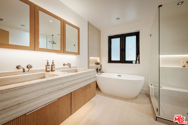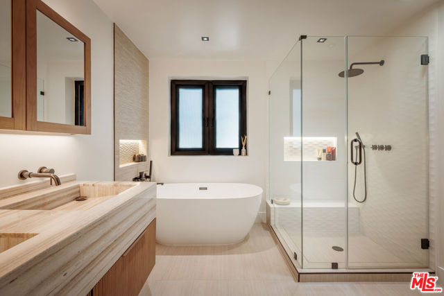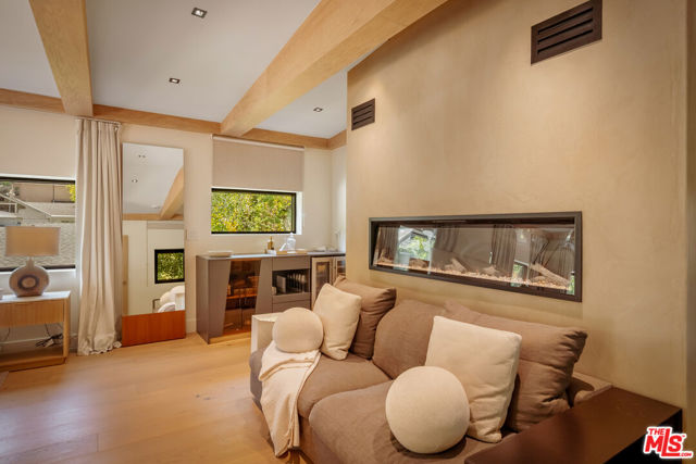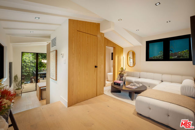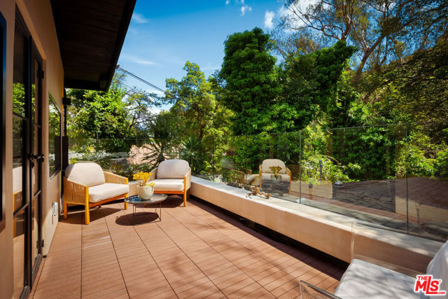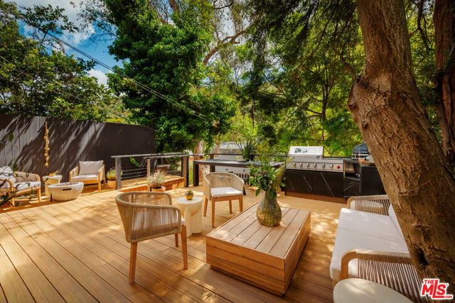 A Canyon Hideaway, Reimagined. Set quietly within the trees of Laurel Canyon, this residence is defined by a rare balance of thoughtful architecture, natural warmth, and a sense of calm that feels immediate and lasting. A gated entry introduces the home with intention, offering privacy from the moment of arrival. Beyond, the property unfolds gradually, revealing a series of layered spaces that feel both connected and quietly distinct. Inside, light moves gently throughout the day, filtering across wide plank wood floors, custom millwork, and clean architectural lines. Steel framed doors and expansive glass openings draw the landscape inward, creating a constant dialogue between interior and exterior living. The main level is designed for both flow and function, where the kitchen, dining, and living spaces feel open yet grounded. The kitchen itself is tailored and refined, with custom cabinetry, integrated appliances, and direct access to outdoor living, allowing for a seamless transition between everyday moments and entertaining. Upstairs, a full floor primary suite serves as a true retreat. Vaulted ceilings with exposed beam detail create volume and character, while a fireplace lounge introduces warmth and intimacy. The suite opens to a private terrace set among the treetops, offering a quiet vantage point from morning light through sunset. The adjoining bath is spa inspired, with natural materials, clean lines, and a sense of understated luxury. Secondary bedrooms are equally considered, featuring custom built ins, soft natural light, and a cohesive design language that carries throughout the home, ideal for guests, family, or flexible work from home use. Outdoor living is woven into every level of the home. A series of terraces and decks create multiple moments to gather or retreat, each surrounded by mature greenery that enhances both privacy and atmosphere. Anchoring the experience is a fully equipped outdoor kitchen, complete with barbecue, pizza oven, and roaster, designed for long, unhurried evenings and effortless entertaining. Set within the coveted Wonderland School District and just minutes from the energy of the Sunset Strip, West Hollywood, and Beverly Hills, the home offers both convenience and escape, a rare combination in one of Los Angeles' most iconic canyon settings. Private yet connected, refined yet livable, this is canyon living, thoughtfully elevated.