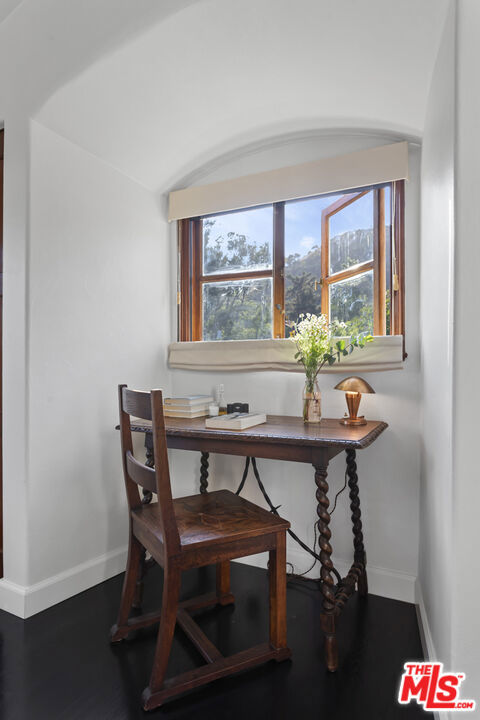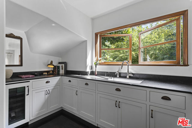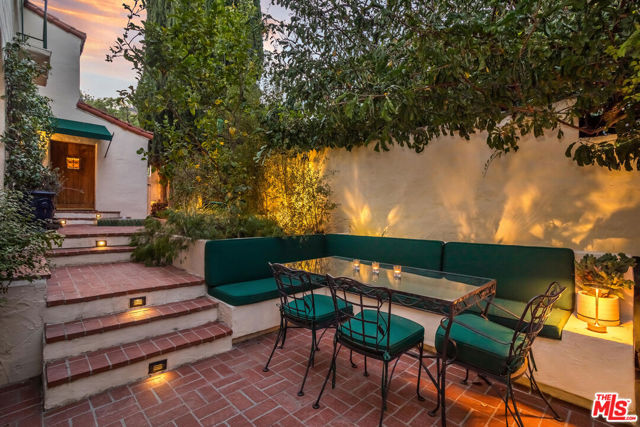 This stunning townhome with Old Hollywood charm is located just above the Sunset Strip, tucked away in lower Nichols Canyon. Part of The Courtney Desmond Estate (1926), Los Angeles Historic Cultural Monument #445, this townhome is 1 of only 5 unique homes that have rarely come to market in their storied near 100 year history. This beauty and charm of this extraordinary residence has been enhanced by a recent extensive and tasteful restoration, with thoughtful attention to detail, retaining the glamour of its romantic architecture. The home lives like a single family residence, while enjoying the ease of being a part of a small, idyllic community, sharing a tranquil pool, surrounding cabanas, and lush, manicured grounds. The gated entry opens to the expansive, yet private outdoor living surrounding the home which includes multiple water features, sitting areas, as well as a built-in sumptuous spa, a tranquil and lush European setting. The home has generous formal living spaces on the main level, with the elegant primary suite and additional 2 bedrooms and 1 bath on the second level. The authentic and meticulously selected finishes are evident throughout, with exceptional attention to detail. Each window overlooks verdant, leafy vistas, and provide a peaceful, quiet setting. Complete with its own private and gated parking, this rare, timeless, masterfully restored offering simply has it all.