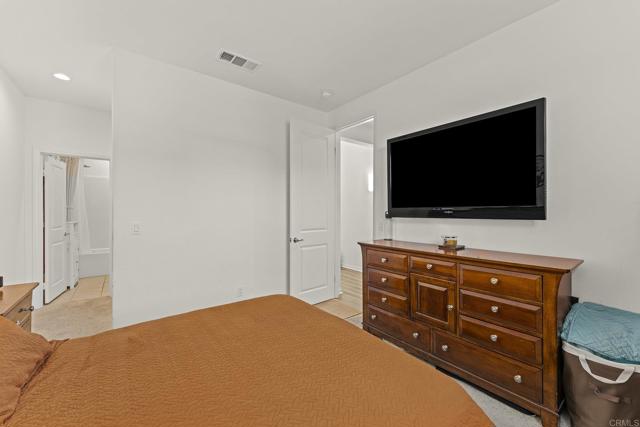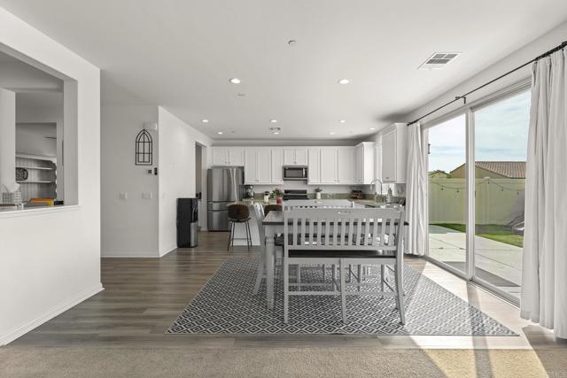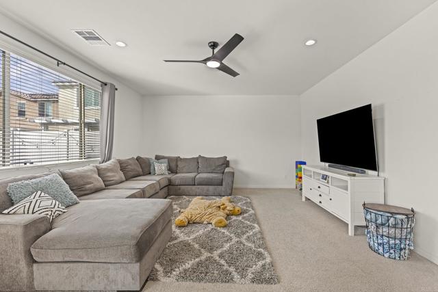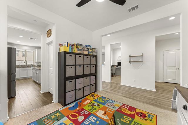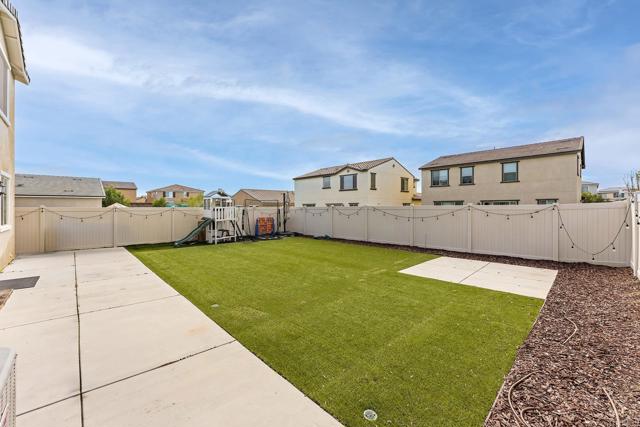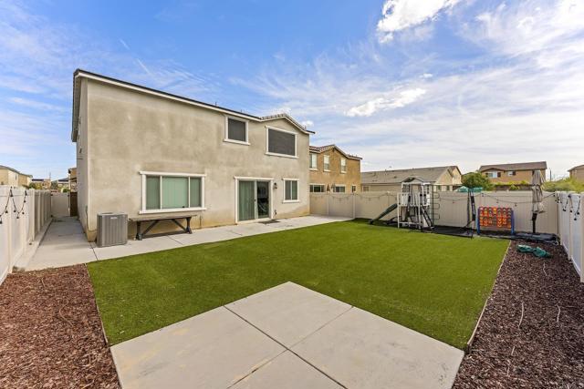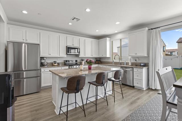 Immaculate Pulte Pinewood Home in highly coveted Spencer's Crossing community featuring 5 Large Bedrooms, 3.5 Baths plus a den/office, and a large loft and over 3300 SF. This two-story home has over $80,000.00 in premium upgrades inside and out. The open floor plan has flowing luxury vinyl plank floors, a guest suite downstairs with a full bath, high ceilings with upgraded 8' interior doors, and custom blinds for perfect control of natural light. The kitchen and dining area are open to a large family room, making it ideal for large gatherings, plus a bonus activity center or flex office space. Upstairs the primary suite is gorgeous and large enough for a King Bed set and sitting area. You will love the walk-in closet. The bath area has a soaking tub, a separate shower, and two sinks. The loft upstairs is yet another great space for multiple uses, and the 3 additional bedrooms are large, open, and bright. The exterior front area is easy maintenance, and the back has a lovely patio area for a future Pergola or firepit. Easy care artificial turf is excellent for activities, entertainment, and games. Landscape is drip irrigation, and also room for a pool and raised garden beds. Home has Leased Sunpower Solar Panels with 4.2KW. HOA includes Pools, Parks, Recreation Center, Sports Park, and more. Minutes to schools, shopping, freeways, and Temecula Wine Country.