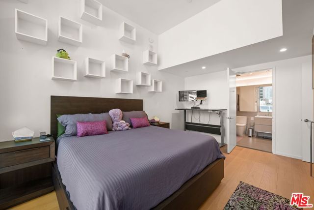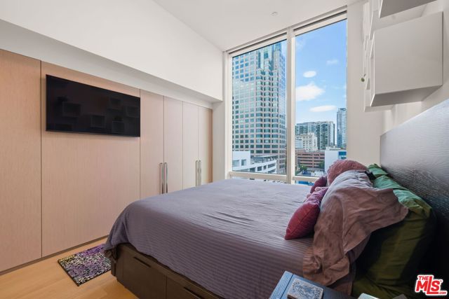 Indulge in refined high-rise living in this exquisite one-bedroom residence at Metropolis Tower II, one of Downtown Los Angeles' premier luxury addresses. Showcasing a sophisticated open-concept design, this residence is bathed in natural light through dramatic floor-to-ceiling windows, offering captivating skyline views and an elevated sense of space. Every detail has been thoughtfully curated, from the sleek, modern finishes to the chef-caliber kitchen appointed with premium appliances, custom cabinetry, and clean, contemporary lines. The seamless flow between living, dining, and kitchen spaces creates an effortless setting for both intimate relaxation and upscale entertaining. The bedroom serves as a tranquil retreat, complete with generous closet space and expansive windows framing the city beyond. The spa-inspired bathroom features refined finishes designed for comfort and style. An in-unit washer and dryer add everyday convenience to this polished residence. Metropolis Tower II offers over 1.7 acres of resort-caliber amenities, including a sparkling pool and spa, expansive sun deck, outdoor lounges with BBQ areas, serene sky and meditation gardens, and a state-of-the-art fitness center. Residents also enjoy exclusive access to a business lounge, screening room, billiards room, children's play areas, dog park, golf putting green, EV charging stations, and 24-hour concierge and security services. Perfectly positioned in the vibrant South Park district, moments from world-class dining, shopping, and entertainment, this residence delivers a seamless blend of luxury, convenience, and iconic city living.
