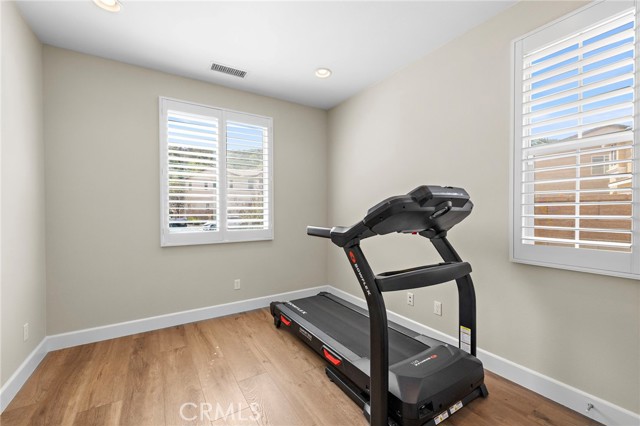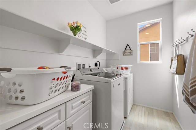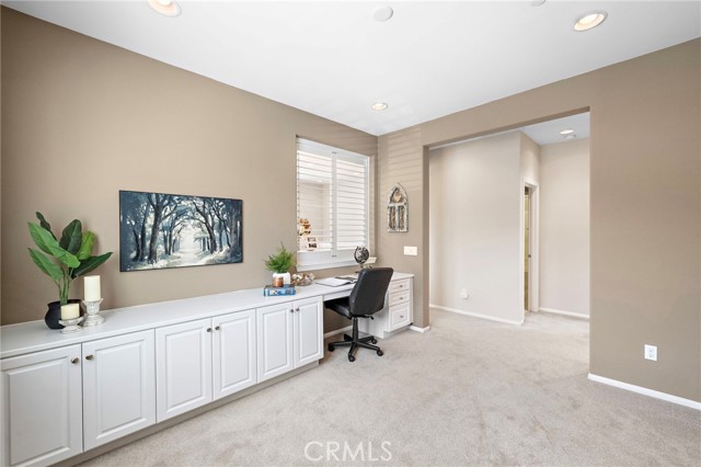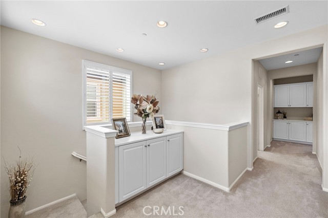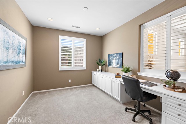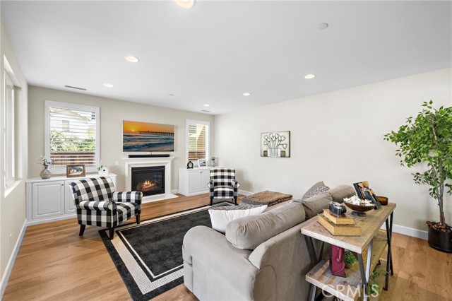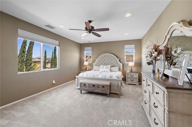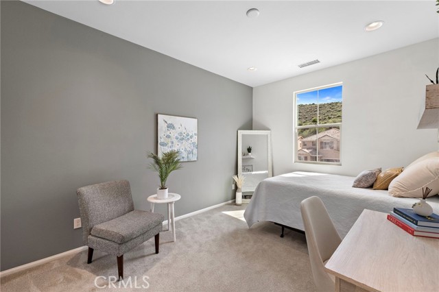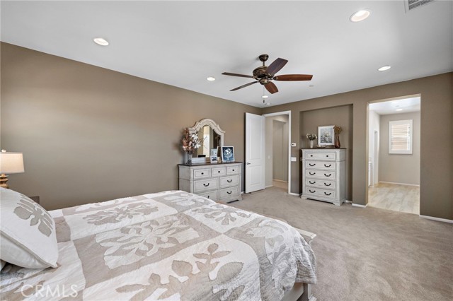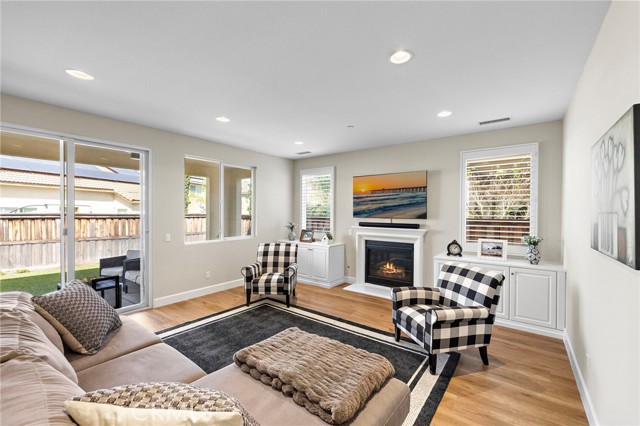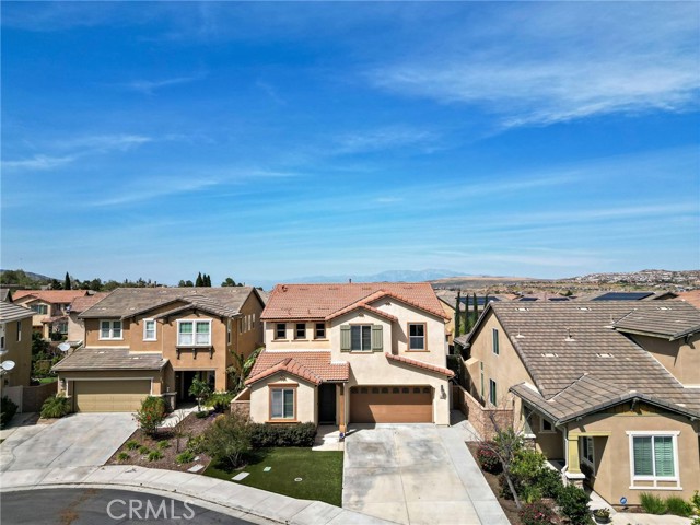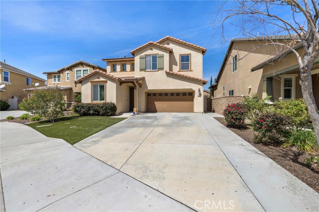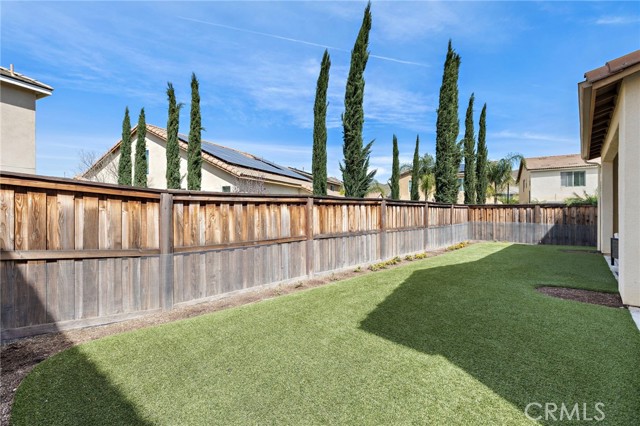 Welcome to 11514 Elderberry, a beautiful move-in ready home in the gated community of Serrano Ridge, located in the Sycamore Creek neighborhood of Corona, CA. This upgraded house sits on a premium cul-de-sac lot with a rare four-car driveway that's unusual find here, where most driveways hold just two cars. The low-maintenance artificial turf gives it immediate curb appeal. Inside, the open-concept layout features a custom Board & Batten entryway with crown molding. Luxury vinyl plank flooring runs throughout the first floor, and 24 recessed lights provide bright, even lighting in every room. The kitchen features extended cabinetry, a full tile backsplash, a touch-activated faucet, and a brand-new stainless steel refrigerator that’s less than six months old. The California room, with a fireplace and ceiling fan, offers seamless indoor-outdoor living that's great for entertaining. This home includes a rare first-floor bedroom and full bathroom, ideal for multigenerational living or guests. It also has a dedicated movie room with custom built-in cabinetry and a desk. The spacious primary suite features mirrored closet doors, a glazed chrome-framed shower, and dual medicine cabinets. Additional upgrades include whole-house interior wall insulation for better soundproofing and energy efficiency, custom wood blinds, rain gutters, pre-wired ceiling fans, and roofline electrical outlets for holiday lighting. Located in the top-rated Corona-Norco Unified School District, this home is within walking distance to Todd Elementary, two community pools, a splash pad, a fitness center, and the 25-acre DeLeo Regional Sports Complex. This complex features baseball diamonds, soccer and lacrosse fields, pickleball and tennis courts, a lighted track, a skate park, a bike park, a dog park, and miles of scenic trails. Enjoy low HOA fees and easy access to freeways, shopping, dining, and just 30 minutes to Orange County beaches.