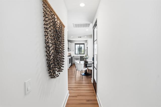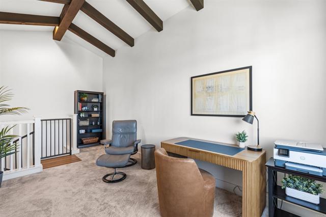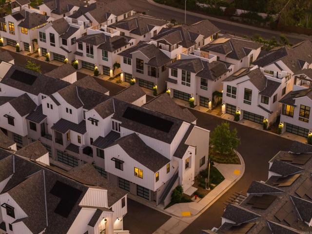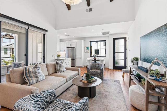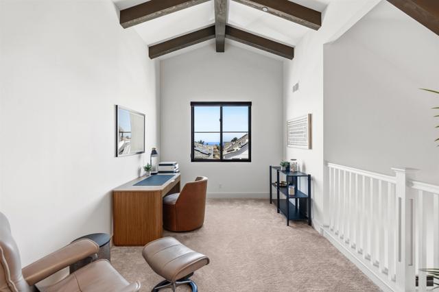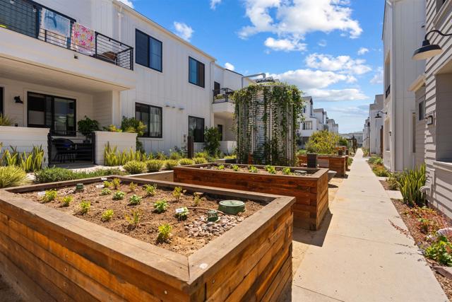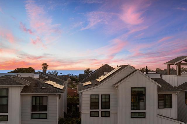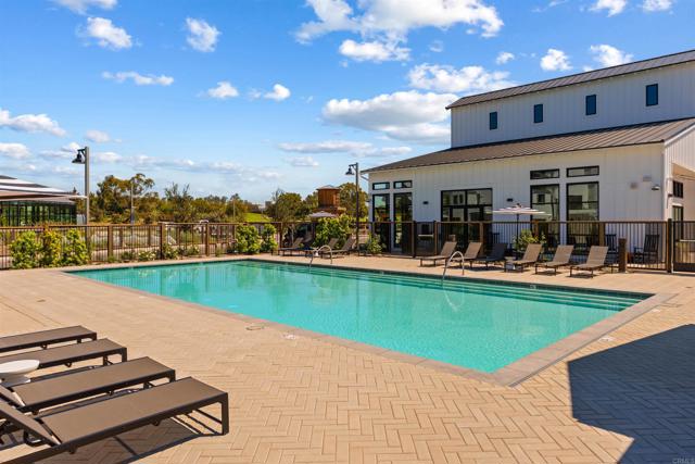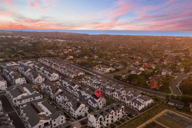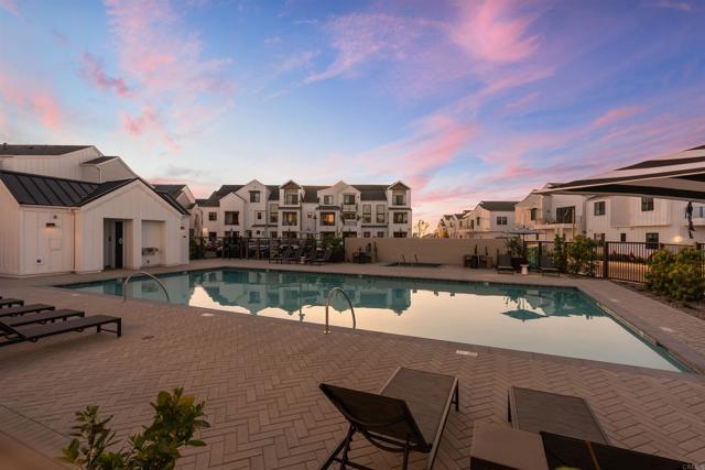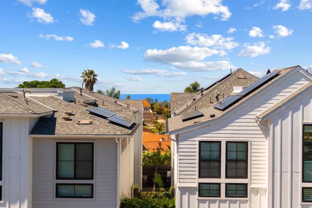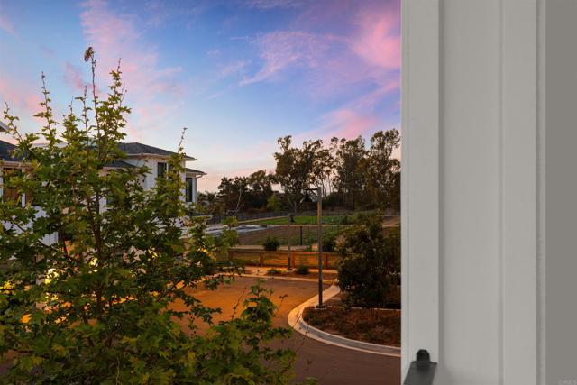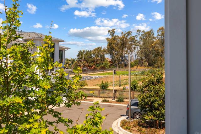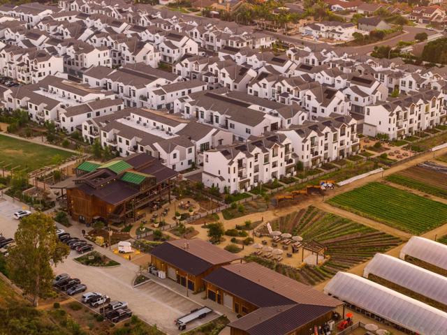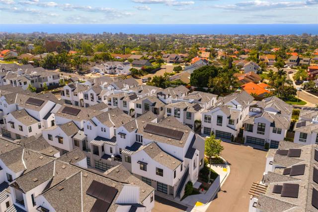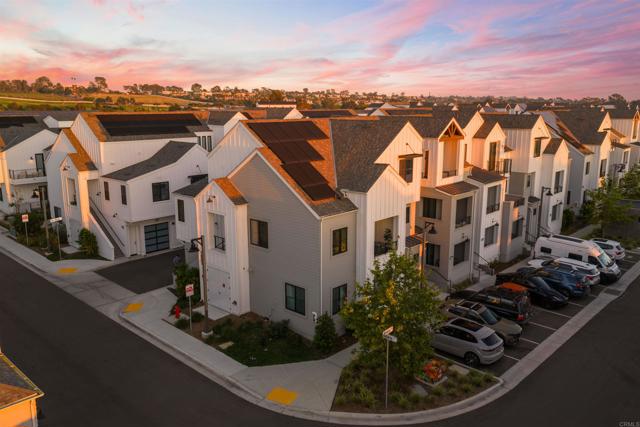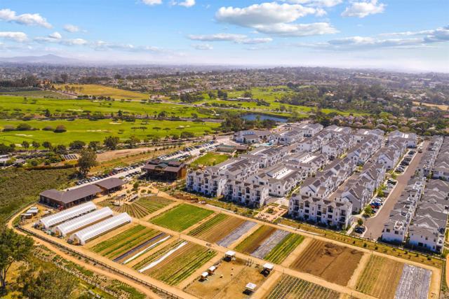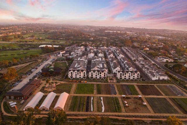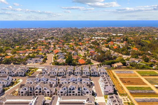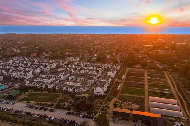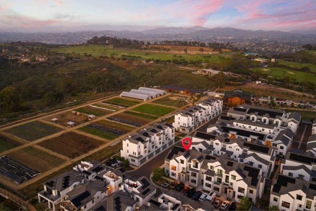 Within Fox Point Farms, opportunities like this are exceptionally rare—where ocean views and farm-front living come together in one remarkable home. Perched on a premium corner, this exceptional end-unit residence captures sweeping views of both the organic farm and the Pacific Ocean, all from a light-filled, elevated vantage point, where every window frames something beautiful. A dramatic, light-filled entry sets the tone, anchored by a sculptural designer chandelier and soaring ceilings that immediately draw your eye upward. As an end unit, natural light pours in from multiple exposures, enhancing the home’s airy, coastal feel. Thoughtfully designed to live like a two-bedroom, the spacious loft offers incredible flexibility as a guest space, office, or creative retreat. The interior is richly upgraded with a custom built-in cabinetry wall, woven designer wallpaper in the primary suite, and a boutique-style California Closet system within a large walk-in closet, offering both style and exceptional functionality. The primary bath is equally refined, featuring black marble flooring in the shower and an upgraded glass enclosure, while the kitchen and living areas flow seamlessly to a private outdoor space complete with custom sun-filtering drapery—perfect for effortless indoor-outdoor living and soaking in those rare farm-meets-ocean views. Additional enhancements include custom blackout shades, a soft water system, designer lighting and finishes throughout, smart home features, and paid solar for energy efficiency and long-term savings. Beyond the home, life at Fox Point Farms is truly something special. Centered around a 5.5-acre working organic farm, the community blends coastal living with a vibrant, connected lifestyle. Residents enjoy access to a striking, thoughtfully designed clubhouse featuring a state-of-the-art fitness center, yoga studio, social lounges, and a golf simulator, along with a resort-style pool, spa-inspired outdoor spaces, dog park, community gardens, and scenic walking trails woven through edible landscapes. Just steps away, the village comes alive with local favorites like Haven Farm + Table, Harvest Market, Fox Point Brewing, Fox Point Roasters, and more—plus regular yoga classes, live music, and community events that create an energy unlike anything else in Encinitas. Ideally located just minutes from Encinitas’ iconic beaches, world-class surf, and renowned golf courses including Encinitas Ranch Golf Course, this home offers the ultimate blend of relaxation and recreation. Whether you’re seeking a full-time residence or the perfect coastal retreat, this home delivers a true getaway experience—where mornings start with ocean air and farm views, and evenings end with sunsets and community connection. With strong demand and limited opportunities within Fox Point Farms, homes like this tend to be claimed quickly—making this a rare chance to own in one of San Diego’s most distinctive and sought-after communities.