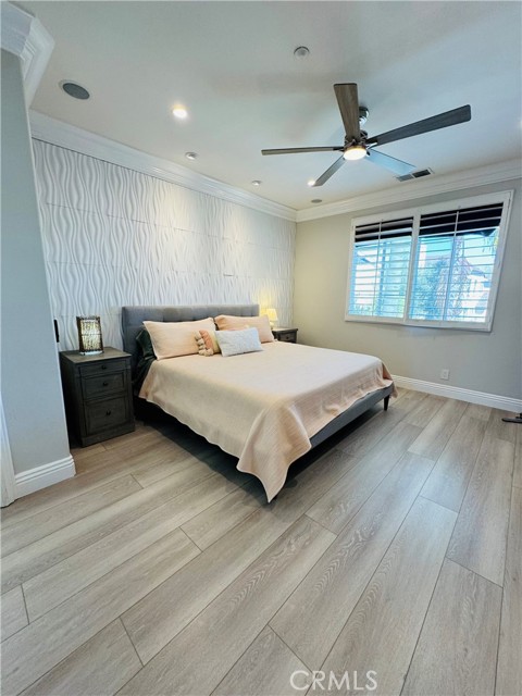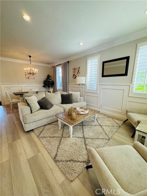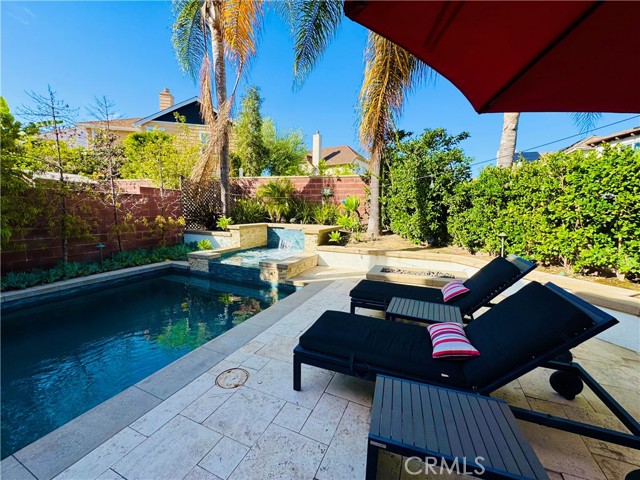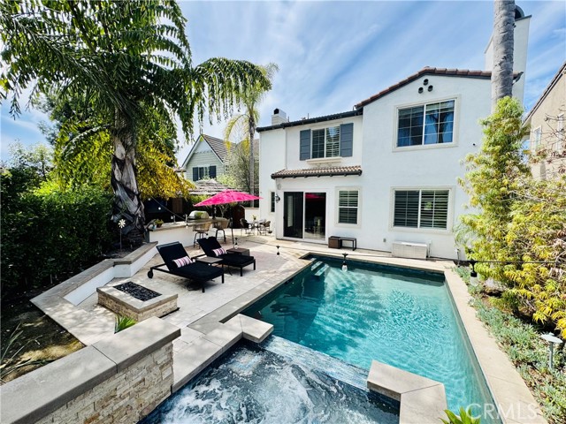 It is a pleasure to introduce you to 5 Baudin Circle, a stunning property located at the end of a highly coveted cul-de-sac in the heart of Ladera Ranch. This four-bedroom, three-bathroom home offers approximately 2,380 square feet of thoughtfully designed living space on a 4,844 square foot lot. The interior features an open-concept formal living and dining area highlighted by new vinyl plank flooring (installed in 2023), soft grey paint, custom built-ins, and plantation shutters. The kitchen is a chef’s dream, equipped with white shaker cabinets, quartz countertops, a designer tile backsplash, a six-burner stainless-steel cooktop, a new oven, and a walk-in pantry. Additional upgrades include a remodeled main-level bathroom, and a new tankless water heater (2024). The backyard serves as an exceptional space for entertaining, featuring a saltwater pool and spa with an overflow waterfall, a fire pit, and a large built-in BBQ area. This outdoor oasis is fully optimized for hosting, complete with a refrigerator, kegerator, and a custom cabinet designed for a 70" television. On the second level, you will find all four bedrooms alongside a spacious laundry room and ample hallway storage. The property also includes a two-car attached garage with epoxy flooring and a new 220V Tesla charger. Furthermore, the home is conveniently located just minutes from Ladera Elementary, Ladera Ranch Middle School, the Daisy Clubhouse, and Founders Park.