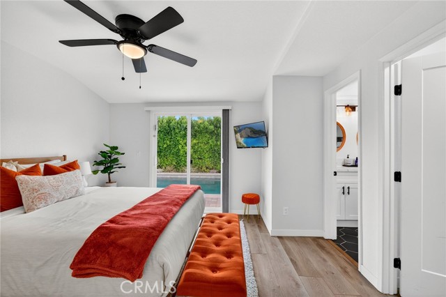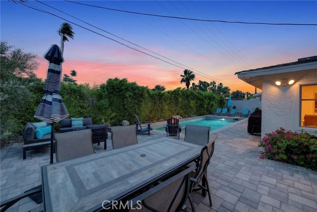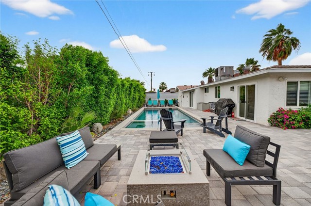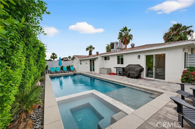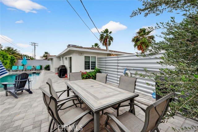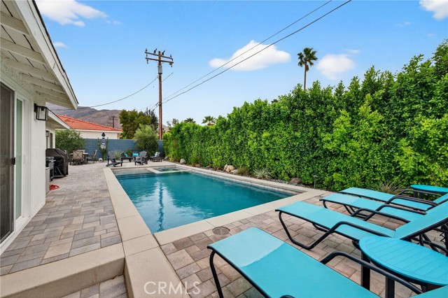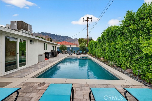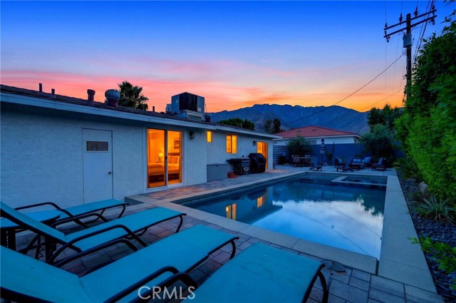 Welcome to this stunning 3 bedroom, 2 bath modern retreat, ideally situated on a tranquil street in the highly sought-after historic Racquet Club community of Palm Springs. Thoughtfully renovated and completely reimagined, this home blends contemporary style with effortless desert living. No detail has been overlooked. The resort-style backyard is an entertainer’s dream, featuring a PebbleTec saltwater pool and spa, ambient outdoor lighting, drought tolerant landscaping, upgraded irrigation, a bocce ball court, fire pit, and a fully equipped barbecue area all enclosed by sleek aluminum fencing for added privacy. Inside, the home showcases engineered flooring, dual-pane windows, and a beautifully redesigned kitchen with new cabinetry, modern appliances, and striking Caesarstone quartz countertops. Smart home features, including Ring cameras and remote system controls, provide convenience and peace of mind. The expansive side yard offers rare flexibility, with space for RV or boat parking. Additional upgrades include a new 200-amp main electrical panel and a dedicated 240V/50-amp outlet for a Wallbox EV charger. Located just minutes from downtown Palm Springs, you’ll enjoy easy access to premier shopping, dining, entertainment, and casinos. This property is also a proven successful short-term rental with future bookings already in place. Also, we have an opportunity for the buyer to take advantage of a 1% interest rate reduction on ANY loan program – VA or Conventional – at ZERO cost to you. Lower monthly payments, no extra fees. Contact me to learn how!