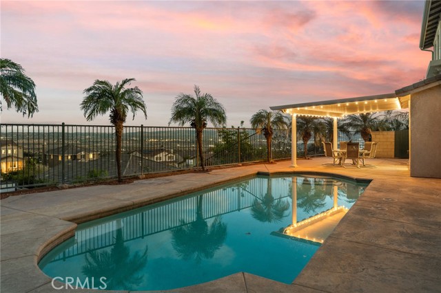 Views from EVERY angle — front AND back! Welcome to this stunning 5-bed, 3-bath, 3,455 sq ft East Highlands Ranch gem where panoramic city lights views and resort-style outdoor living take center stage. From the moment you pull up, the sweeping valley views captivate — and they only get better out back, where a sparkling pool and spaciuos entertainer's yard are perfectly framed by shimmering city lights as far as the eye can see. Whether you're hosting poolside gatherings or watching the valley light up at dusk, this backyard is truly one of a kind. Inside, soaring high ceilings and an abundance of windows flood the formal living room with natural light and frame those spectacular views like living artwork. The open-concept family room with cozy fireplace flows seamlessly into the kitchen — ideal for everyday living and effortless entertaining. A convenient downstairs bedroom with a full bathroom is perfect for guests, in-laws, or a private home office. The spacious 3-car tandem garage offers plenty of room for vehicles, a workshop, or extra storage — a feature that's hard to find in this market. Set on a generous 9,341 sq ft lot in one of Highland's most coveted planned communities, and zoned for the highly regarded Redlands Unified School District, this home checks every box.