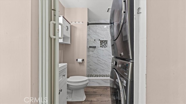 Great opportunity to own a single-level condo in Pomona featuring 2 bedrooms and 2 bathrooms. The living room flows into the kitchen with white cabinets, a stylish backsplash, and plenty of storage, opening to the dining area with extra cabinets, a ceiling fan, and a sliding door leading to the backyard. The primary bedroom offers a spacious layout with direct backyard access, a tile shower, and in-unit laundry for added convenience. The second bedroom is also well-sized, and the hallway bathroom features a shower/tub combination. Enjoy a private backyard with space to relax or entertain. Additional highlights include a detached 2-car garage, central A/C (approx. 4 years old), and a newer tankless water heater. HOA includes water, trash, and common area maintenance. Conveniently located near schools, shopping, and easy freeway access.