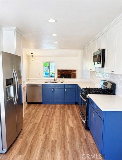 Beautifully upgraded 2-bedroom, 2-bathroom home ideally located just minutes from the freeway, California Baptist University, and the Galleria at Tyler. Situated in a quiet, well-maintained community, this home offers a functional open floor plan with vaulted ceilings that create a bright and spacious feel. The kitchen opens to the living area and features quartz countertops, shaker-style cabinetry, stainless steel appliances, and a convenient bar-top for additional seating. The living room includes a cozy fireplace and a front-facing window that fills the space with natural light. Both bathrooms have been tastefully updated, including dual sinks in the primary suite and a private en-suite layout. Additional improvements completed in recent years include updated flooring, baseboards, doors, hardware, and finishes throughout, giving the home a clean and cohesive look. The kitchen provides direct access to the private, enclosed backyard, complete with a covered patio—ideal for relaxing or entertaining. Major system upgrades add to the home’s overall value and efficiency, including a newer roof (2018), water heater (2020), and HVAC system (2021). Additional features include triple-pane windows for improved energy efficiency and noise reduction, a whisper-quiet garage door system with MyQ smart access (2022), an attached garage with direct access, indoor laundry hookups, and a secure locked mailbox. A well-maintained, move-in-ready home in a convenient location offering comfort, functionality, and long-term value.