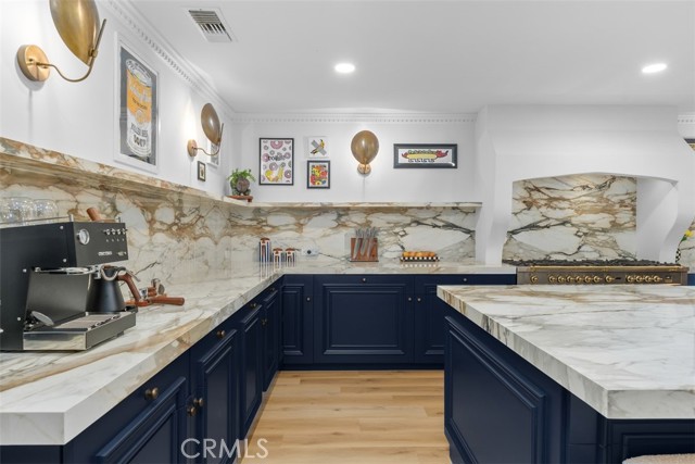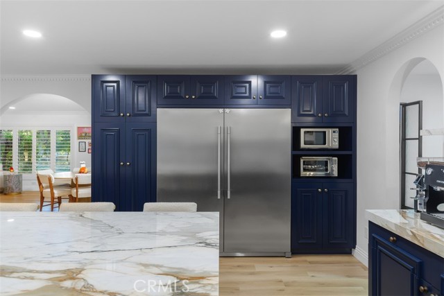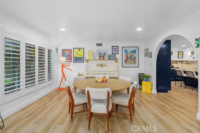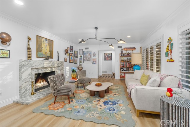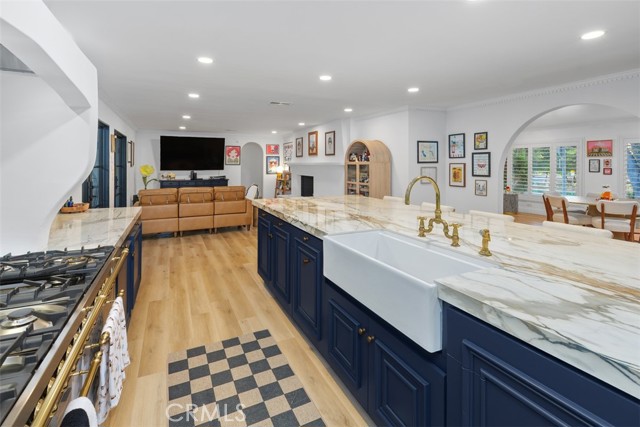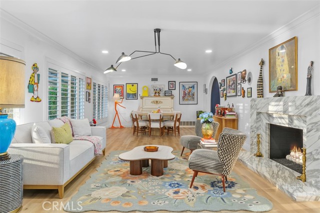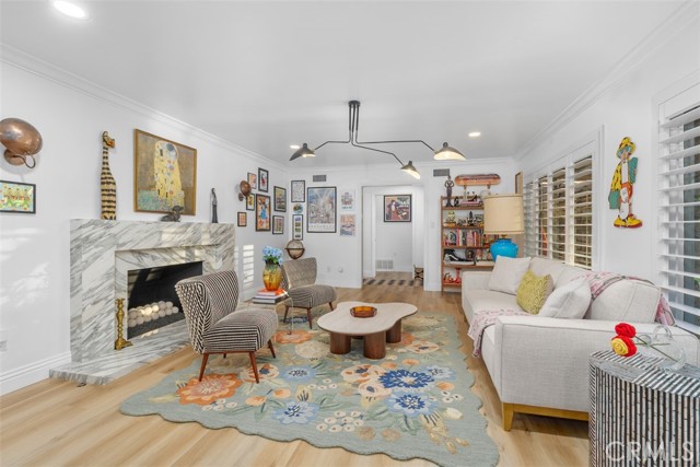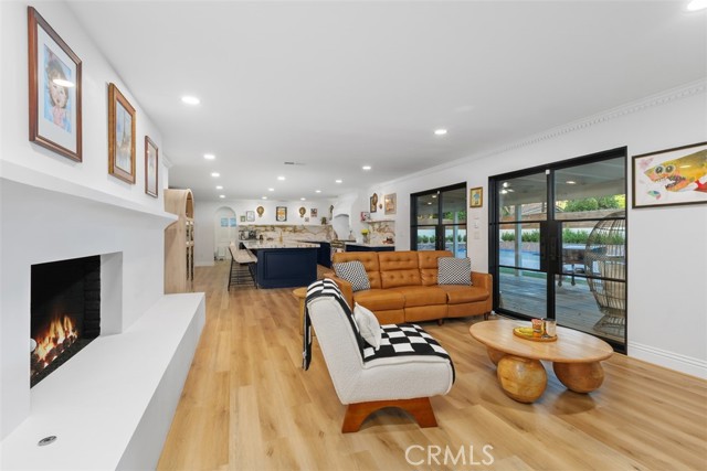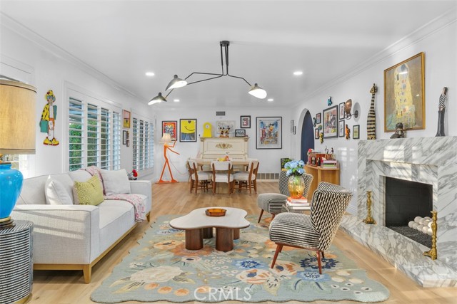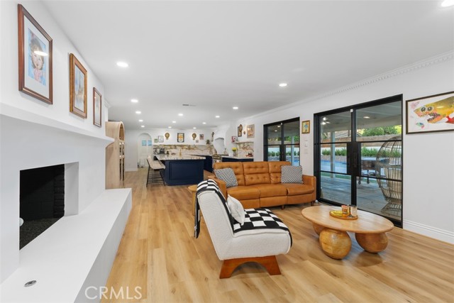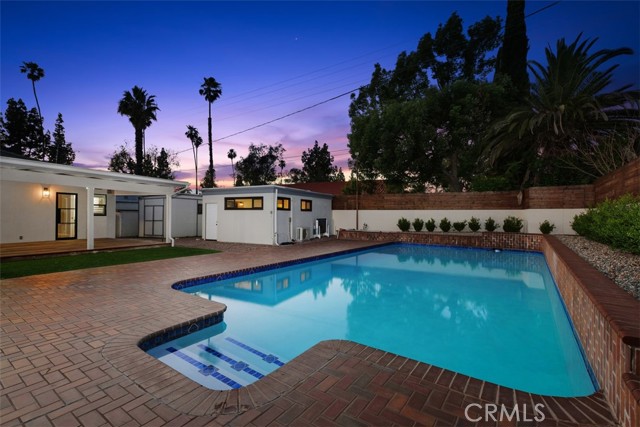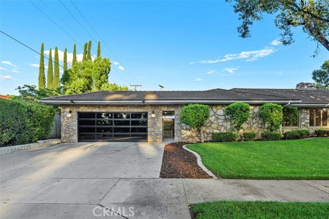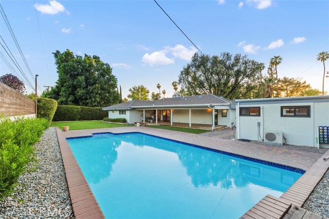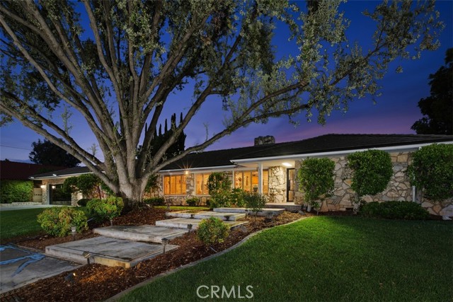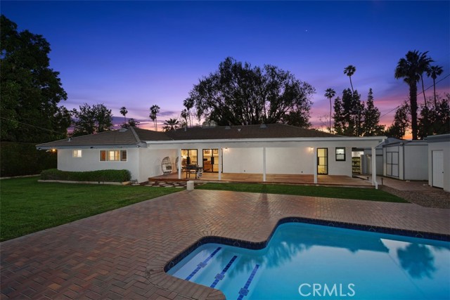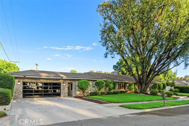 Located along historic tree-lined Victoria Avenue in Riverside’s sought after Hawarden Hills neighborhood is this highly updated and cared for Mid-Century Ranch single story estate. Tucked away on a quiet frontage road of one of Riverside’s most iconic city landmarks this nearly 4,000 square foot home offers a well designed floorplan in a picturesque setting. The living and dining rooms offer expansive park-like views through the three large picture windows looking west. The luxury plank flooring, marble fireplace, plantation shutters, and high end fixtures provide a sense of warmth and curated design to the space. The focal point of the interior is the great room composed of the entertainer’s kitchen and family room. The remodeled kitchen has a grand island with beautiful custom porcelain solid surface counters and backsplash, custom cabinetry, 60” Nostalgie Italian range, deep farmhouse sink, refrigerator and freezer, custom lighting and seating for eight. The family room with it’s raised fireplace is well situated across from the kitchen making the ideal setting for hosting dinner parties and family dinners. Two iron French Doors lookout from the family room on to the patio and pool area. The primary suite is privately located at the east end of the home and has plank flooring, separate tub and walk-in shower, dual sinks, dressing table, and walk-in closet. The three secondary bedrooms provide amply space and are supported by the 2 guest bathrooms. The backyard features a massive covered patio and deck that covers most of the home. A detached pool house/ADU has been recently remodeled and includes a living space, ¾ bathroom and storage area. The in ground pool has been resurfaced and is the perfect place to enjoy Riverside’s sunny weather. The carport has been converted into an oversized 2 car garage and is equipped with a Tesla charger. This turnkey Hawarden Hills makes for the perfect place to call home.