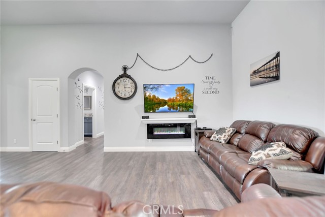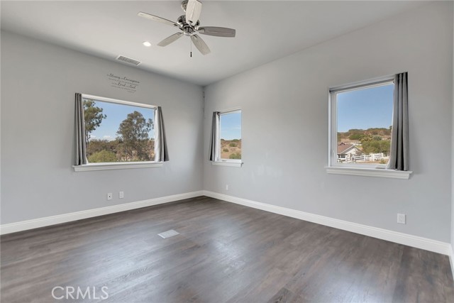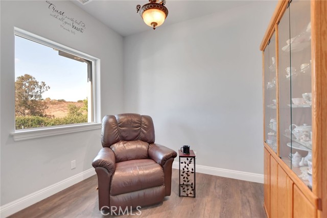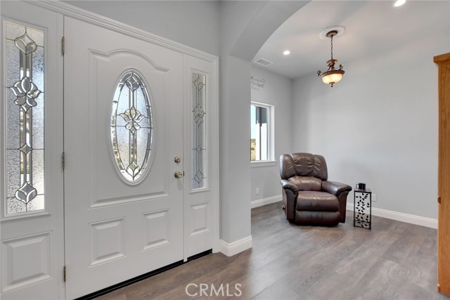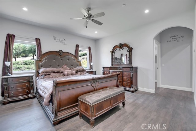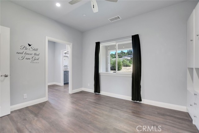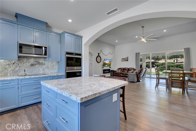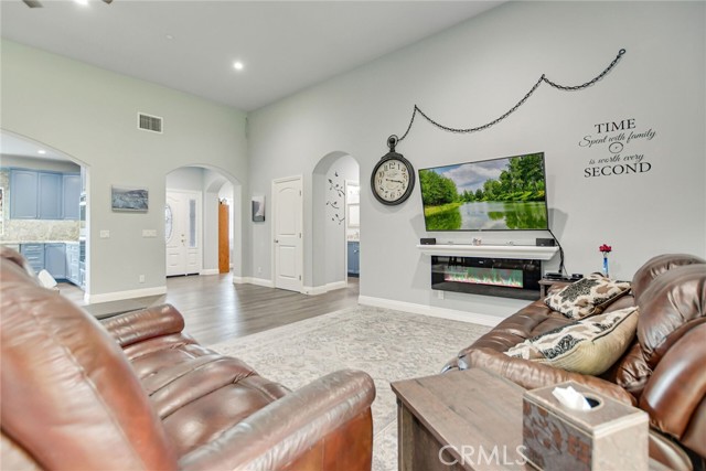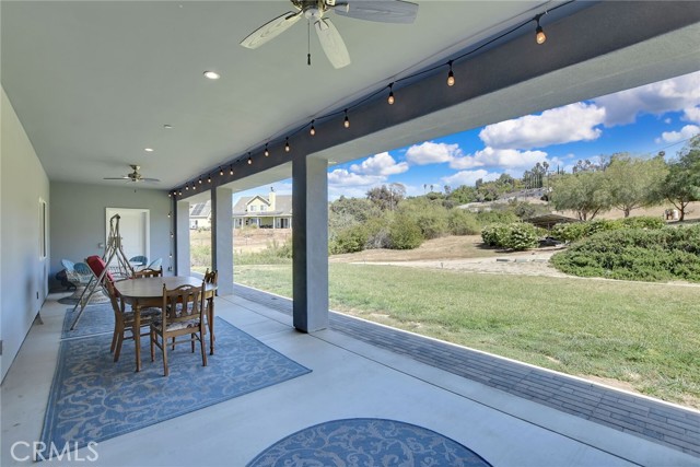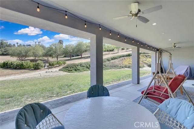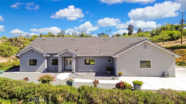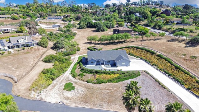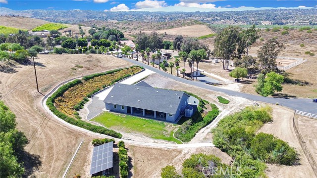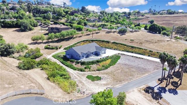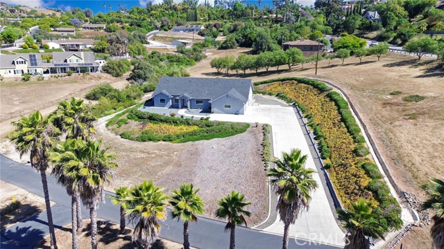 Experience refined country living in this beautifully crafted custom home set on 2.41 private acres at the end of a quiet cul-de-sac. Thoughtfully designed with both comfort and functionality in mind, this exceptional 3-bedroom, 3-bath residence offers spacious living, high-end finishes, and remarkable attention to detail throughout. The heart of the home is an impressive great room with soaring 12-foot ceilings, abundant recessed lighting, and expansive picture windows that frame the surrounding landscape. A dramatic 9’ x 12’ sliding glass patio door seamlessly connects the interior living space to a large covered patio, creating an effortless indoor-outdoor lifestyle. The chef’s kitchen is designed for both entertaining and everyday living, featuring custom soft-closing cabinetry, granite countertops throughout, under- and over-cabinet LED lighting, a generous island with ample workspace, pot filler above the stove, and a walk-in pantry conveniently located between the kitchen and garage. Each of the three bedrooms offers its own private full bathroom and walk-in closet, while the primary suite is thoughtfully positioned on the opposite wing of the home for added privacy. Luxury details continue with porcelain-tiled showers, custom closet shelving, ceiling fans throughout, waterproof luxury vinyl flooring, and a beautifully appointed laundry room with extensive cabinetry, granite countertops, and utility sink. The finished 3-car garage features sealed flooring, whole-house water filtration, automatic door openers with battery backup, and attic storage with walkable trusses. Outside, the expansive grounds offer exceptional versatility with solar panels, RV hookups, a long private driveway, landscaped yards, hillside plantings, and ample space for equestrian facilities, a future ADU, or other expansion with A70 zoning. Blending thoughtful design, modern efficiency, and peaceful acreage, this one-of-a-kind property offers a rare opportunity to enjoy privacy, space, and elevated living.