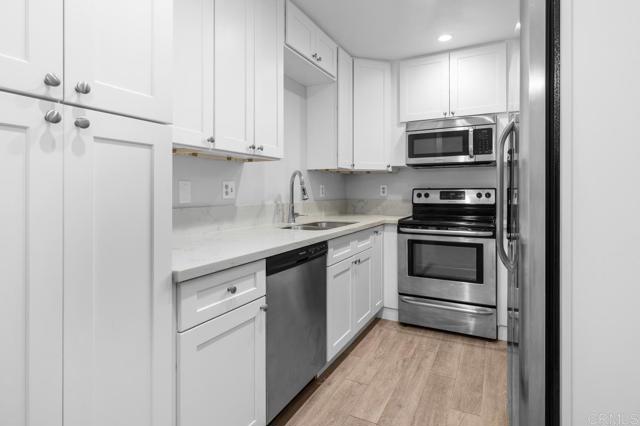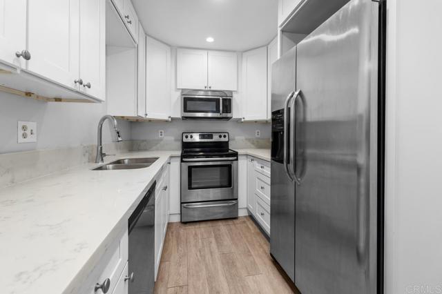 Great opportunity to own in one of the most desirable San Diego Neighborhood. Remodeled 1bd 1/bath single level located on the third floor no unit above condo in Regency Villas 62+ community in prime University City location. Interior features: Spacious Living Room with a brand new (millard) sliding door to step outside onto the outdoor patio/balcony with view. Kitchen equipped with stainless steel appliances. Bathroom has been thoughtfully remodeled with flooring and elegant shower. Large bedroom with a good sized closet and cabinets. New carpet flooring and new paint throughout. Dual pane windows. Resident enjoy access to a Clubhouse with group activities, card games, fitness center and recreational room.