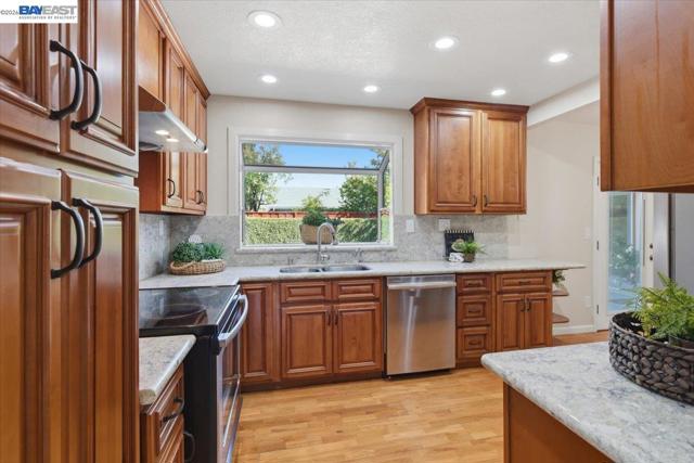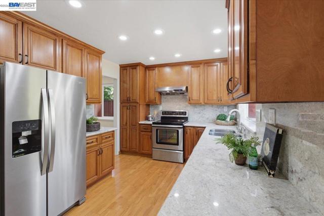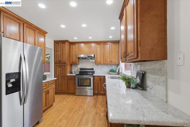 This is it!!! One of the largest homes in Ardenwood, right across the street from Ardenwood Elementary. Located in a quiet, interior location and in excellent condition! **Remodeled kitchen with upgraded cabinetry, slab granite counters, stainless steel appliances, recessed lighting! **Remodeled guest baths, **NEWLY remodeled main bath on the second level, **NEW paint all through the interiors, ample recessed lighting, **Expansive family room with soaring ceilings. **Bonus, large bedroom suite on the street level with tub and walk in shower AND a spacious walk-in closet! **All appliances including A/C stay with the home! Low maintenance back and front yards with hedges all around, fruit trees, rose plants, vegetable beds, hydrangeas! Ample space and more importantly, **privacy in the back yard! NO HOA! Award winning schools - Ardenwood Elementary, Thornton Junior High and American High. Call school to check availability!