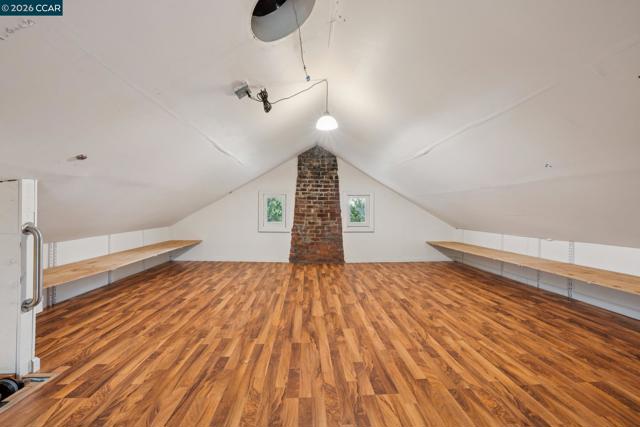 This Maxwell Park bungalow has been loved for over a century, and it shows in all the right ways, with character and charm you just can't replicate. This home features original hardwood floors, classic built-ins in the dining room, and wainscoting that newer construction rarely gets right. The layout is straightforward and livable: a sun-filled front bedroom, a second bedroom that looks out onto a private backyard, an updated kitchen with newer appliances, and a refreshed hall bath. Above it all, a walk-up attic is perfectly suited for a home office, creative studio, or quiet retreat. Step outside and you've got a sunny, private backyard perched above the street. Room to garden, entertain, or just decompress. A detached garage at street level adds storage or workshop space, and the whole package sits in one of Oakland's most cohesive, community-minded neighborhoods.