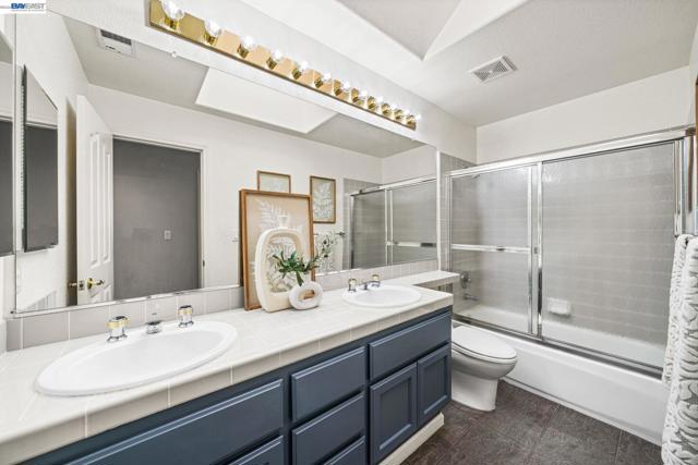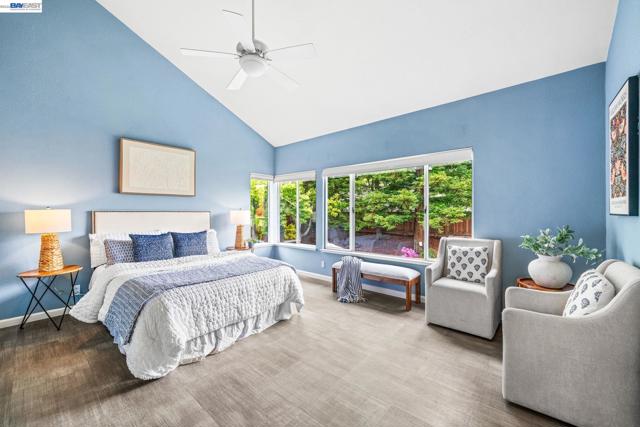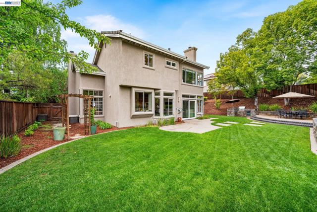 Located in the highly sought-after Old Ranch Estates, this beautifully updated 2,507 sq. ft. home sits on over a quarter-acre lot. The functional 4-bedroom floor plan is designed for today’s lifestyle, featuring a full bedroom and bathroom on the main level. Upstairs, The primary suite features views of the hills, a masterfully reimagined bathroom that includes a palatial walk-in shower with multiple high performance shower heads. The primary closet has an abundance of built-ins which maximizes the most extensive wardrobes while keeping everything neatly tucked away. Two additional bedrooms and a spacious bonus room offers flexible living space—perfect as an additional bedroom, media room, playroom, or home office. The updated eat-in kitchen features a walk-in pantry, center island, and opens to the family room, creating a warm and inviting atmosphere that flows seamlessly to the private backyard retreat. Enjoy multiple patios, a built-in BBQ, lush lawn, and a spacious side yard—ideal for year-round relaxing and entertaining. Additional highlights include a 3-car garage, fully owned 30kW solar system with two Tesla Powerwalls, custom closet solutions, and low-maintenance artificial turf in the front yard. Conveniently located near top-rated schools, parks, trails, and shopping, with easy access to Highways 580/680 and BART, this home offers the perfect combination of luxury, comfort, and location in one of San Ramon’s most desirable neighborhoods. A must-see to truly appreciate. Welcome home!