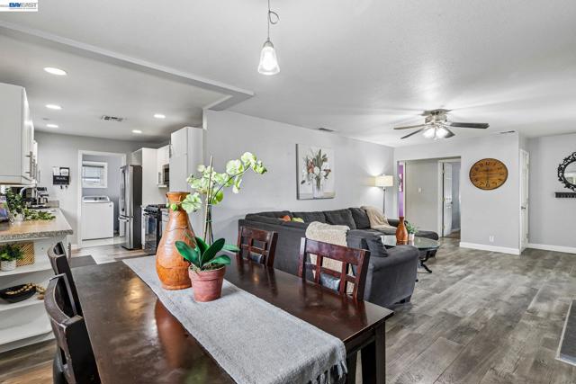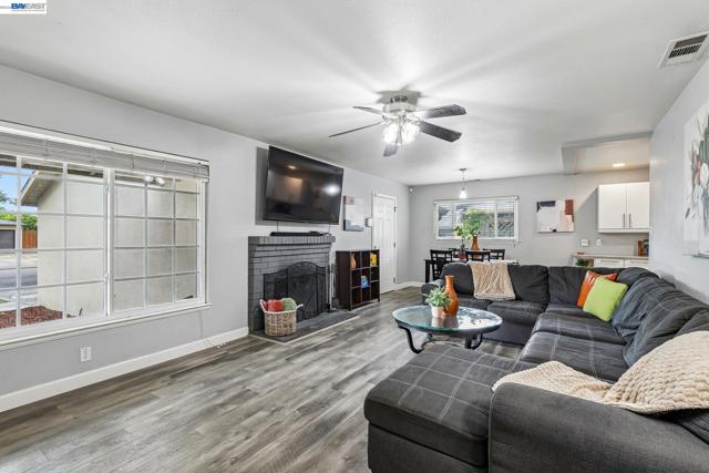 Charming 3 bedroom, 1.5 bath home offering 1,150 square feet, nestled in a quiet and established neighborhood. Step inside to an inviting open concept layout with laminate flooring throughout the main living areas. The living room features a cozy brick fireplace, creating the perfect space to relax or gather with family and friends. The backyard offers a private setting with room to garden, play, or create your own outdoor retreat. An attached two car garage adds convenience and extra storage. Ideally located near hospitals, downtown Tracy, schools, parks, and major commuter routes, this home combines comfort, functionality, and a central location. Welcome Home!