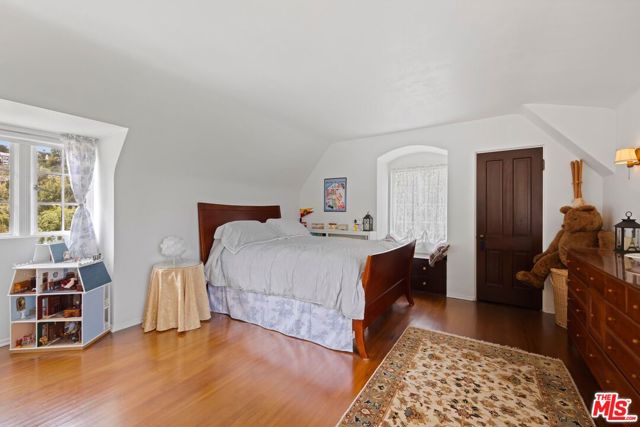 Welcome to a timeless piece of Los Angeles history. Available for the first time in over six decades, this stunning 1931 Tudor Revival home, designed by architect Rollin F. Pearson, sits on a private lot with sweeping views of the Los Feliz Hills, Glendale, and the San Gabriel Mountains.Combining classic English charm with authentic craftsmanship, this two-story residence is a masterpiece of enduring design. From the rich redwood beams and traditional lath and plaster walls to the exquisite original details, the home retains its historic elegance. Step inside and discover beautifully preserved oak tongue and groove floors, stained wood doors, and original light fixtures and hardware. The grand staircase, featuring an original wrought iron railing, is bathed in natural light, as is the rest of the home throughout the day.The elegant dining room is perfect for hosting, complete with French doors that open to an expansive veranda. The living room is a true showstopper, adorned with floor-to-ceiling mahogany paneling, leaded stained glass, and a grand wood-burning fireplace. The spacious kitchen features original tiles and rich stained wood cabinetry, a butler's pantry, and a bar with mahogany countertops. A cozy breakfast room opens to the patio, an ideal spot for morning coffee.Upstairs, three spacious bedrooms offer generous closets, built-in cabinetry, and multiple breathtaking views. The primary en-suite and second bath showcase classic original Spanish tiles and fixtures that have been meticulously preserved. A fourth bedroom and bath on the main floor provides private accommodations for guests or maids quarters.The spacious basement offers potential for a wine cellar or a "bodega," and the lush grounds are dotted with mature oak trees. The flat backyard is a rare find and an ideal space for entertaining or for adding a pool. This is more than a home; it's a piece of Los Angeles history in one of its most desirable neighborhoods.