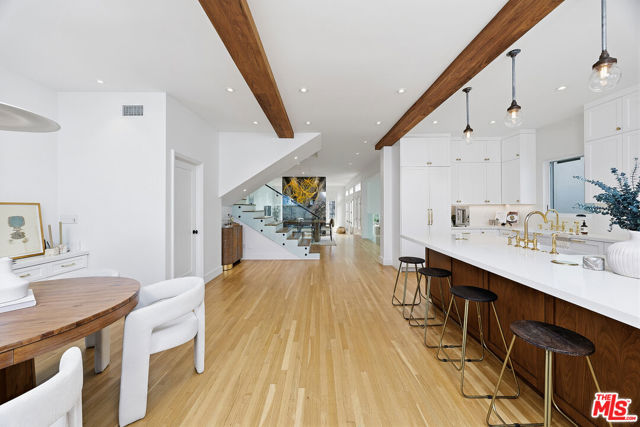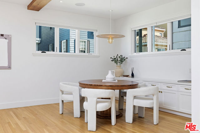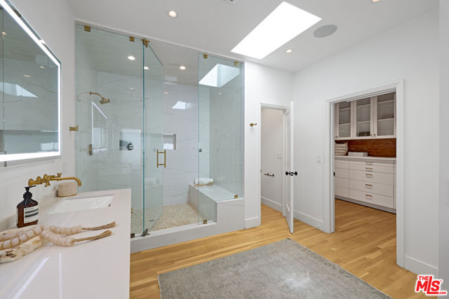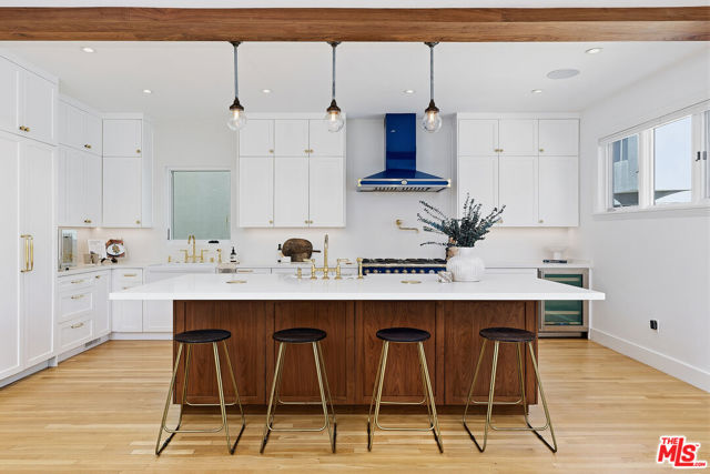 On the Silver Strand, this rare, bespoke coastal retreat embodies architectural excellence in one of the Westside's most coveted beachside enclaves, seconds from the sand and the Lighthouse Bridge, balancing disciplined design with an inviting, effortless ease. A solid walnut front door opens to sunlit interiors where white oak floors and a sculptural walnut staircase establish a quiet, confident tone. French doors and a custom back lit walnut skylight with triple laminated glass flood the home with natural light, while a dramatic wood burning and gas fireplace wrapped in eight slabs of granite grounds the great room with warmth and presence. The chef's kitchen is both refined and functional, featuring a La Cornue range, Liebherr Monolith refrigeration, Rohl fixtures, Caesarstone surfaces, and custom walnut cabinetry designed to be lived in and loved. Designed for both retreat and gathering, the home also includes a true Media/bonus room (or 4th bedroom) pre-wired for 14 Dolby Atmos speakers and featuring double 3M soundboard for fully immersive viewing. The primary suite offers a calm, restorative escape with an Amerec steam shower and cast iron clawfoot tub, while all bathrooms are finished with Starfire glass and Italian marble, and every closet is cedar lined with custom built ins. Six skylights and multiple outdoor spaces create a natural rhythm between inside and out, including an English style front walk, private courtyard, bamboo decked roof deck, and lush, low maintenance landscaping. Rare for the beach, the climate controlled and fully insulated four car garage includes built ins that add meaningful everyday functionality, while an infrared sauna completes the home's quiet focus on wellness. Set within a private, tightly held enclave with around the clock security patrol, the location offers effortless access to Abbot Kinney, the Venice Canals, the Farmers Market, and the Westside's most loved dining and boutiques!