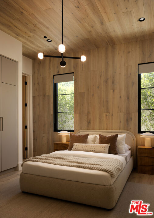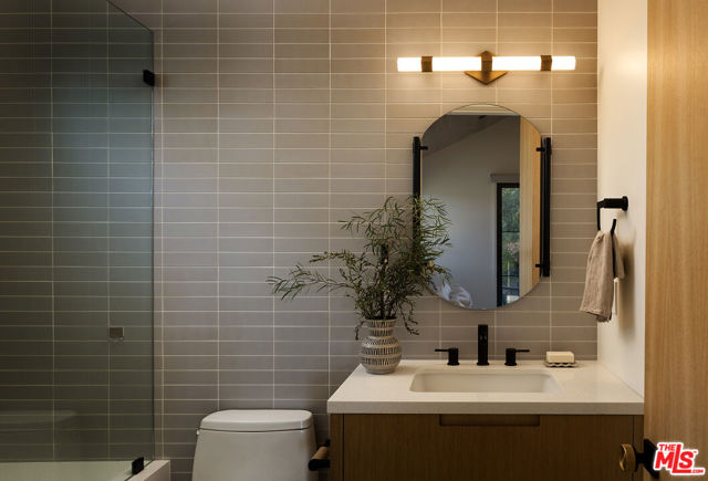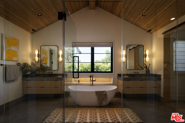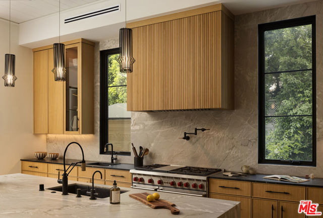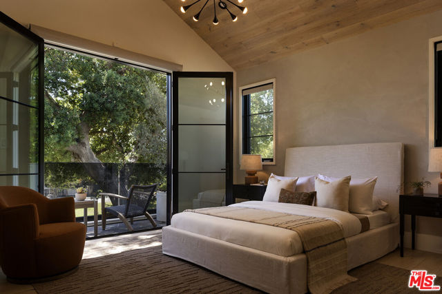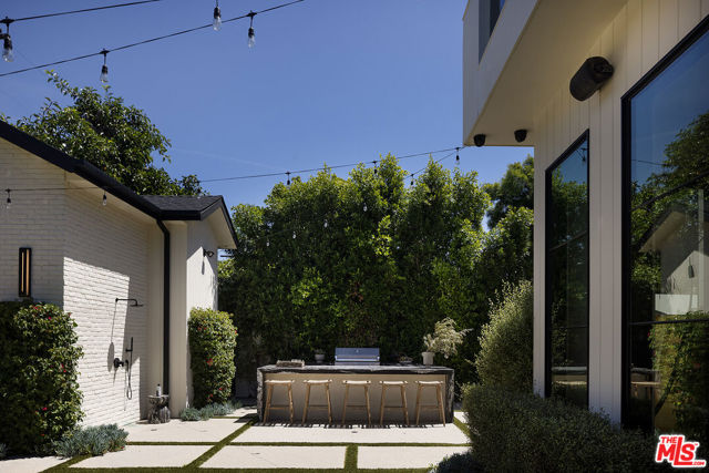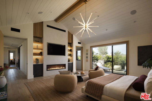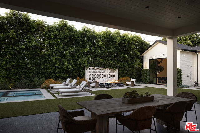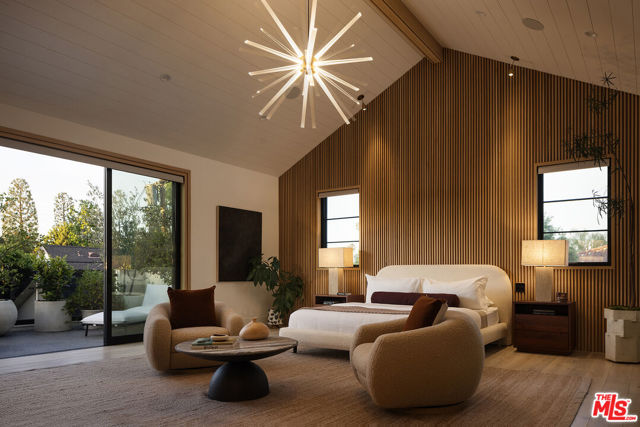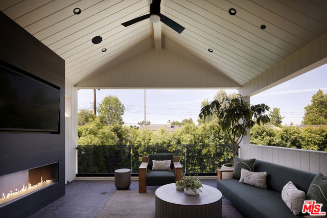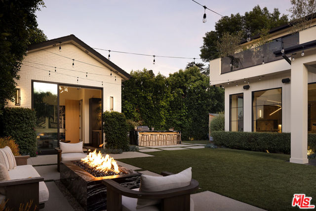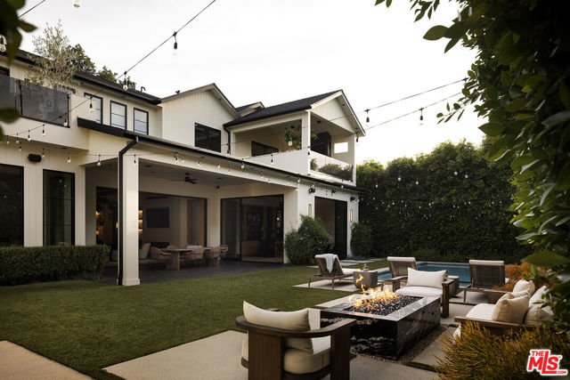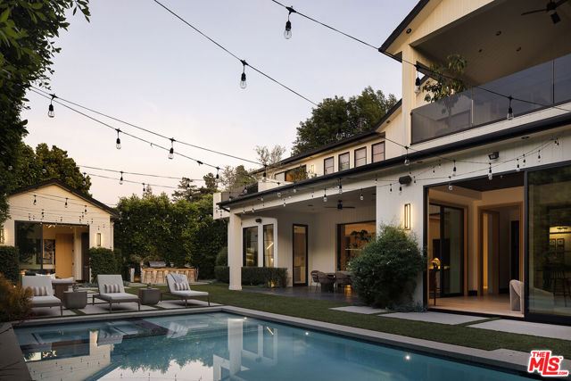 Tucked behind gates along one of Chandler Estates' most coveted tree-lined streets, this recently constructed residence delivers a bold expression of modern farmhouse done right and California living, where architectural scale, refined materials, and thoughtful design converge across approximately 7,500 square feet of voluminous living space. From the moment you enter, the home establishes its presence. A dramatic double-height foyer leads into expansive living spaces defined by soaring ceilings, wide-plank wood floors, and custom millwork throughout. Walls of glass disappear to reveal a true indoor-outdoor lifestyle, with interiors extending seamlessly into a resort-caliber backyard designed for both everyday living and larger-scale entertaining. The outdoor setting is complete with a pool and spa with water features, multiple lounge areas, fire pit, and dual BBQ stations, creating a private environment that feels more like a boutique retreat than a residential yard. A detached pool house with its own bath offers flexibility for a gym, office, or guest suite. At the center of the home, the chef's kitchen pairs clean, modern lines with top-tier functionality, featuring premium appliances, custom cabinetry, double oversized islands, and a fully equipped butler's pantry. The space flows effortlessly into a family room and the informal dining including the breakfast area and al fresco dining, along with a sophisticated yet practical formal dining room, through a thoughtfully designed butlers pantry room, allowing for a range of living experiences from intimate dinners to large gatherings. The main level also includes a full bar, movie theatre, walk-in pantry, laundry room, and en-suite bedroom. Upstairs, the primary suite is designed as a true retreat, generous in scale and thoughtfully appointed with two fireplaces, dual private balconies, a dedicated lounge or fitness space, and an expansive walk-in closet with built-ins and center island. The spa-inspired bath features a soaking tub, oversized glass steam shower, and layered stone and wood finishes that echo the home's overall material palette. Three additional en-suite bedrooms provide privacy and comfort, each finished with the same level of attention to detail. A collection of lifestyle-driven amenities further sets the home apart, including a dedicated theater, a statement bar and lounge, smart home integration, designer lighting, wellness area, and custom carpentry throughout. A three-car garage and gated motor court complete the offering. Positioned just moments from Ventura Boulevard's premier dining, shopping, and entertainment, this is a residence that delivers both convenience and seclusion, designed for those who value space, design, and a home that makes an impression without needing to announce it.