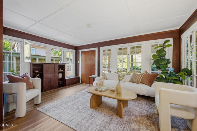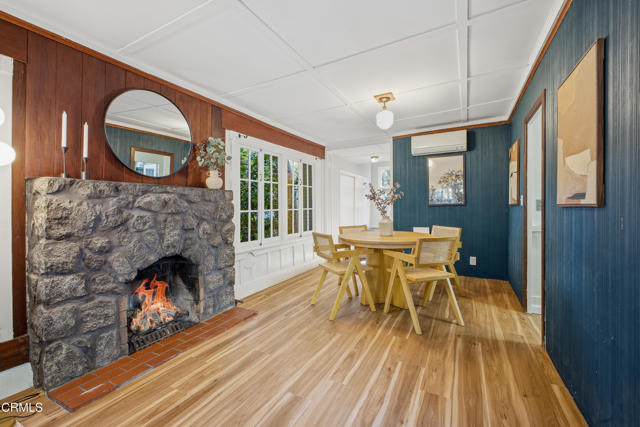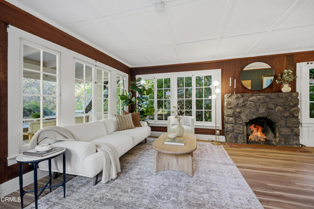 Your Sierra Madre Canyon retreat awaits at 813 Woodland Drive, a charming, character-filled home set within a serene, nature-rich setting with the gentle sound of the creek as your backdrop. From the moment you arrive, the beautifully landscaped front yard, lush lawn, and inviting front porch set the scene for outdoor dining or relaxing in the Southern California sunshine. Inside, the living room is highlighted by rich wood accents, a striking stone fireplace, and peaceful views of the surrounding trees. It's an ideal space to unwind or gather while enjoying the quiet canyon setting. The kitchen blends vintage charm with functionality, featuring well-maintained appliances, built-in shelving, and convenient access to an enclosed patio area with laundry and basement access. The expansive basement, approximately 835 square feet (buyer to verify), provides incredible flexibility for a variety of uses, whether as a home theater, studio, office, or additional entertainment space. The recently upgraded bathroom is thoughtfully designed with elegant tile work, a classic clawfoot tub, and a pedestal sink. Upstairs, two well-sized bedrooms are filled with natural light and treetop views. At the end of the hall, a versatile bonus room, previously used as a primary bedroom, feels like a private retreat with windows on all sides and access to a second-story balcony. From here, enjoy the calming sounds of the nearby creek and the surrounding natural beauty. The property includes a two-car carport and extended driveway parking, as well as tasteful upgrades such as new AC and heat on all three levels. Tucked away in the peaceful Sierra Madre Canyon, this home offers a true sense of escape while remaining just moments from Downtown Sierra Madre with its shops, dining, and welcoming community. A rare opportunity to own a unique canyon property with character, space, and setting.