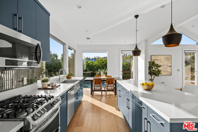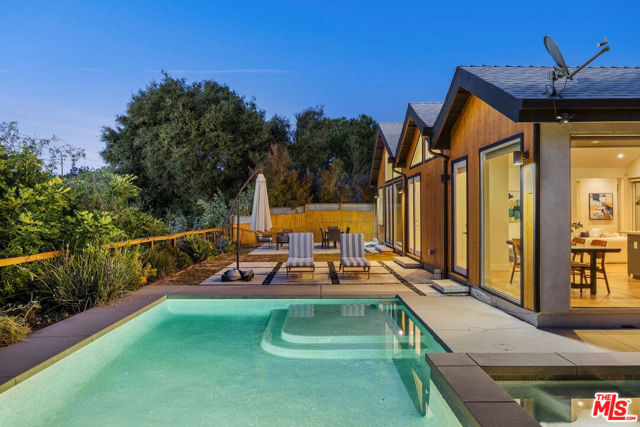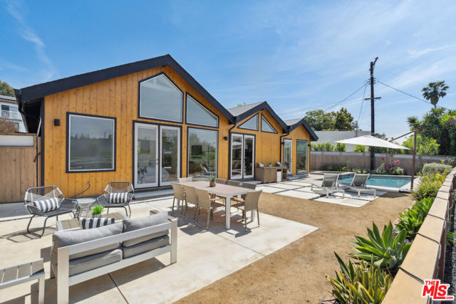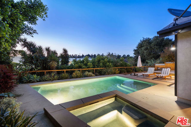 Set high in the hills of Los Angeles, this gated architectural pool home offers privacy, presence, and seamless indoor-outdoor living. Positioned on an expansive 10,000+ sq ft lot, the property welcomes you with a spacious front courtyard anchored by a built-in fireplacean ideal setting for relaxed gatherings and year-round entertaining.Inside, soaring ceilings and an open-concept kitchen are complemented by oversized windows that flood the home with natural light while framing the surrounding landscape. The primary suite is both bold and serene, featuring floor-to-ceiling glass and direct access to a private patio. Two guest bedrooms, along with a thoughtfully designed full bath, are set apart to provide comfort and privacy.Outdoors, a resort-style environment unfolds with a custom pool and spa, multiple lounge areas, and inviting al fresco dining spaces. The terraced hillside below reveals additional usable land, including a generous flat pad suited for entertaining or recreation. A refined blend of architectural impact and everyday livability.