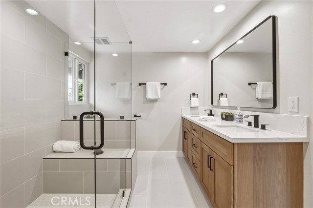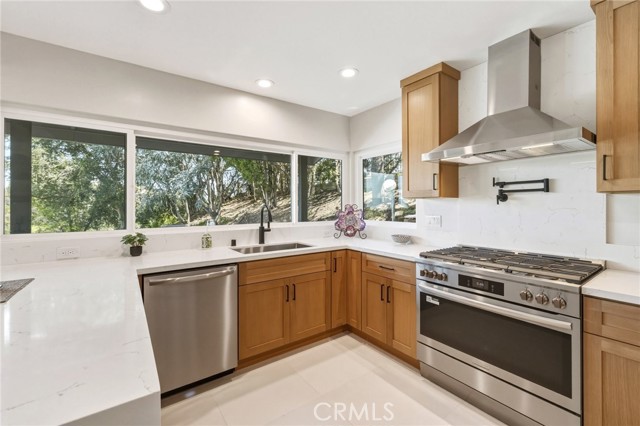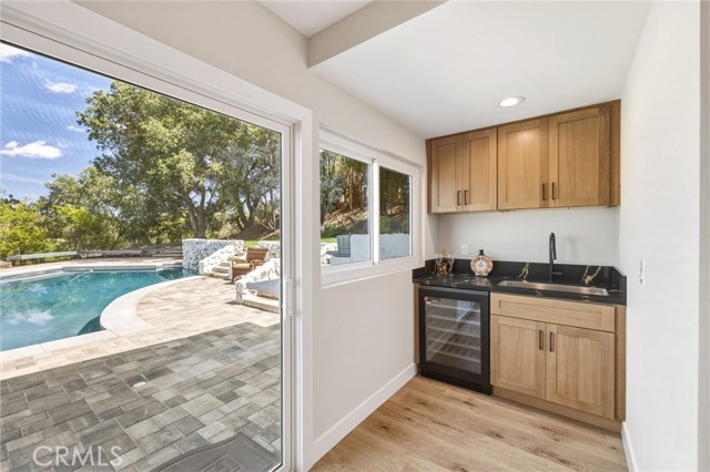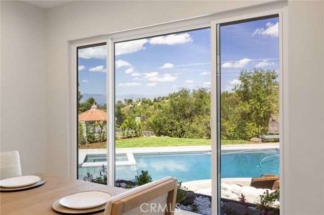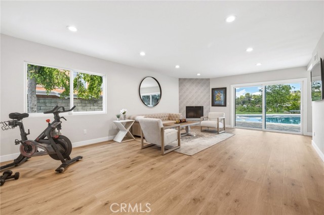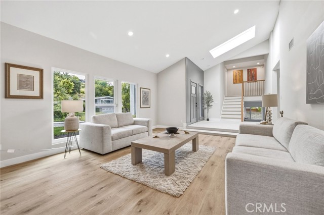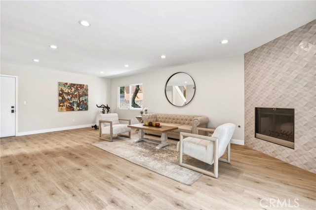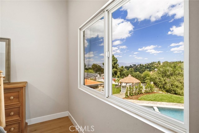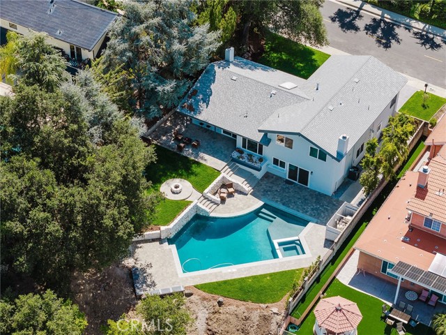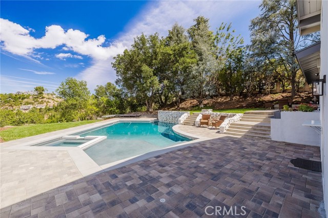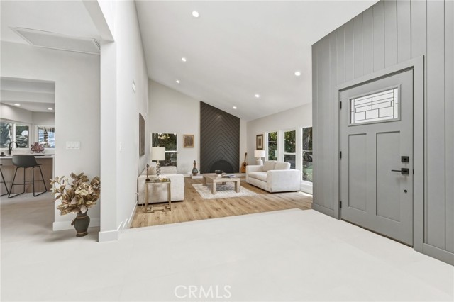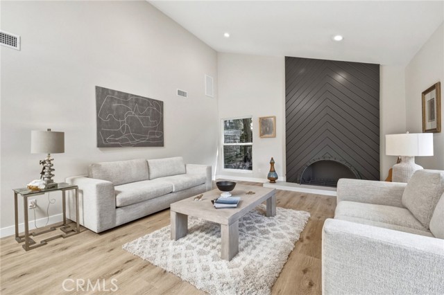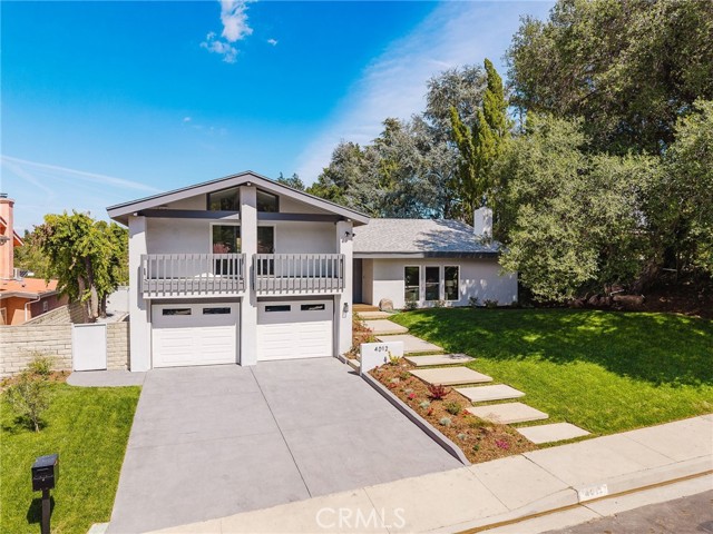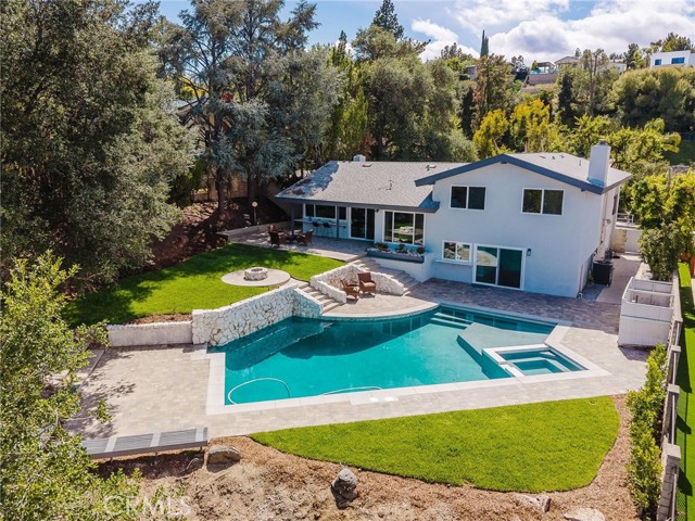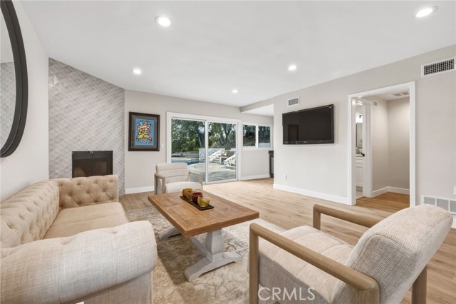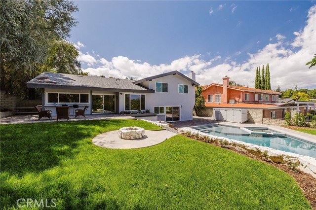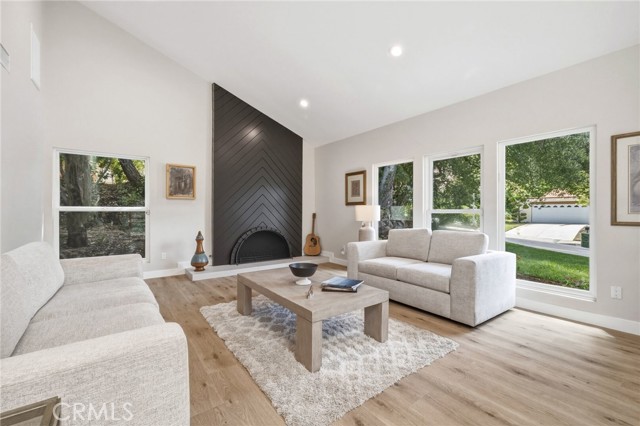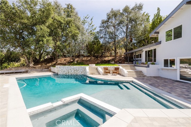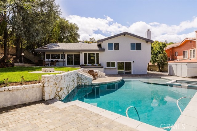 Tucked in the Tarzana hills, this remodeled 1970 contemporary 3-bed/3-bath, 2,516 sq ft home on a 17,749 sq ft lot blends modern lines with warm, comfortable living. A new front door opens to a tiled entry, soaring ceilings, and expansive windows that fill the main level with light and frame city and golf-course views. Wide-plank wood and tile flooring flow through the open living and dining areas, anchored by a sleek fireplace, with no carpeting anywhere. The reimagined kitchen is the hub of the home, with quartz waterfall countertops, custom cabinetry, stainless-steel appliances, and a layout that connects seamlessly to the dining and living spaces. Entertaining is easy, whether you’re hosting a dinner party inside or opening the doors to the backyard for true indoor–outdoor living. Downstairs, a large secondary living room with fireplace, full bathroom, and direct yard access offers flexible use as a media room, playroom, or optional 4th bedroom/guest suite. Upstairs are three spacious bedrooms, including a serene primary retreat, plus well-appointed baths and generous closet space Out back, a freshly remodeled pool becomes the centerpiece of the yard, surrounded by sleek paver hardscaping and framed by open city views. A relaxing Baja shelf offers a perfect spot to lounge in the water, while the spa adds a resort-like touch and an easy place to unwind. With plenty of room for seating and outdoor dining, this low-maintenance backyard is designed for both quiet evenings at home and effortless entertaining..