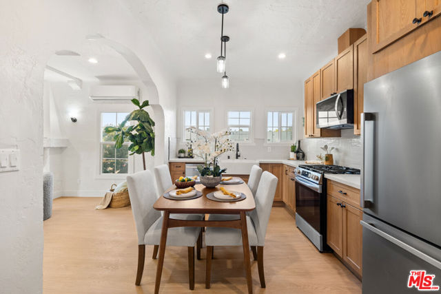 Step into a rare offering where timeless elegance meets modern comfort in the heart of Los Angeles coveted West Adams District. This 1935 Spanish Revival residence captures the romance of a bygone era while embracing thoughtful updates designed for today's lifestyle. Behind its classic white stucco facade and terracotta tile roof, accented with soft blue detailing, the home immediately evokes architectural distinction. Arched windows paired with decorative shutters frame the exterior with character, while curved lines and period craftsmanship create an unforgettable first impression. Inside, a bright and airy living room welcomes you with high, textured ceilings and beautifully preserved plaster walls. A sculpted fireplace serves as a striking focal point, anchoring the space with warmth and artistry. New flooring flows seamlessly throughout, enhancing both cohesion and comfort. The remodeled kitchen blends vintage inspiration with modern functionality, featuring thoughtfully designed cabinetry and updated amenities that cater to both everyday living and entertaining. The bathroom continues the home's narrative with tasteful, period-style tilework that honors its heritage while offering contemporary ease. Natural light pours through expansive windows, illuminating every corner and revealing tranquil views of tree-lined streets. A quaint Juliette balcony offers the perfect setting to unwind and enjoy golden California sunsets. Positioned in the vibrant West Adams neighborhood, this residence places you moments from beloved cafes, local boutiques, and cultural landmarks, delivering a lifestyle that is both dynamic and deeply rooted in Los Angeles history. Offered as a TIC (25% undivided interest), this is a distinctive opportunity to own a piece of architectural heritage. The home includes valuable permitted upgrades, including HVAC, electrical improvements, kitchen and bath renovations, a foundation retrofit, roof work, and termite clearance. Flexible financing options, including as little as 10% down with a 30-year fixed structure, further enhance accessibility. This is more than a home; it is a curated living experience where history, style, and opportunity converge.