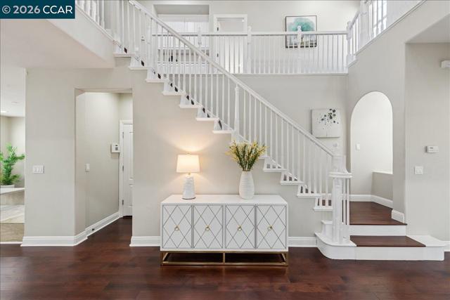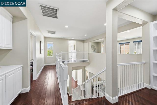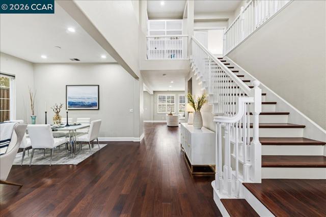 Welcome to your Windemere sanctuary just a step away from Bellingham Square Park—where luxury & modern efficiency meet in one of San Ramon’s most coveted neighborhoods. From the moment you step inside, 10 feet ceilings & designer touches create an atmosphere of sophisticated yet effortless living.Updated Hardwood floors, recessed lights & a stunning custom tile surround that anchors the media area in the family room. At the heart of the residence, the reimagined chef’s kitchen w/ sleek new countertops, a New Gas cooktop, New Sink & Hood, flowing naturally into the living spaces so you never miss a moment while entertaining. A full bedroom w/ Murphy bed, Desk & bathroom on the main level provide a retreat for guests or multi-generational living. Escape upstairs to a Master suite designed for relaxation. Enjoy Versatile large loft as vibrant media or retreat, a dedicated built-in tech center with balcony for a home office, & Space for Library. Most Bedroom closets w/built-in closet organizers. Embracing the future of comfort, this home comes equipped w/ solar panels. A low-maintenance yard for relaxing or entertaining. 3-cars tandem garage w/ Custom cabinets offer extra space. Best of all, you’re just a short stroll away from the Award-Winning Hidden Hills, Dougherty Valley High, Windemere Middle, Shopping & Parks. A Must See!