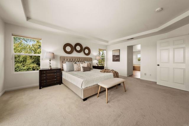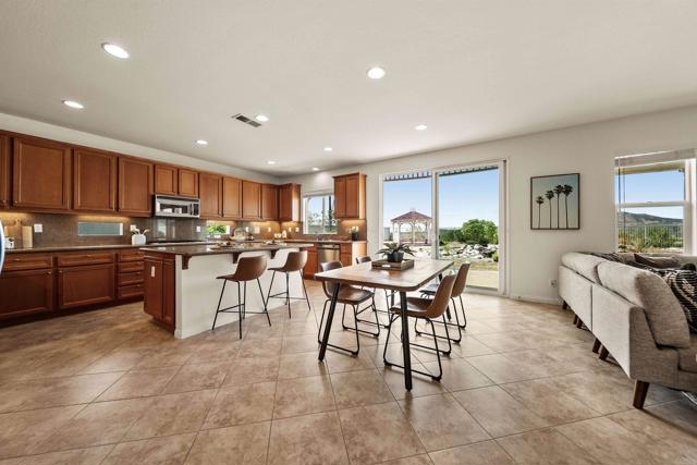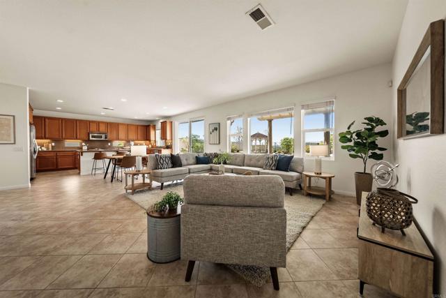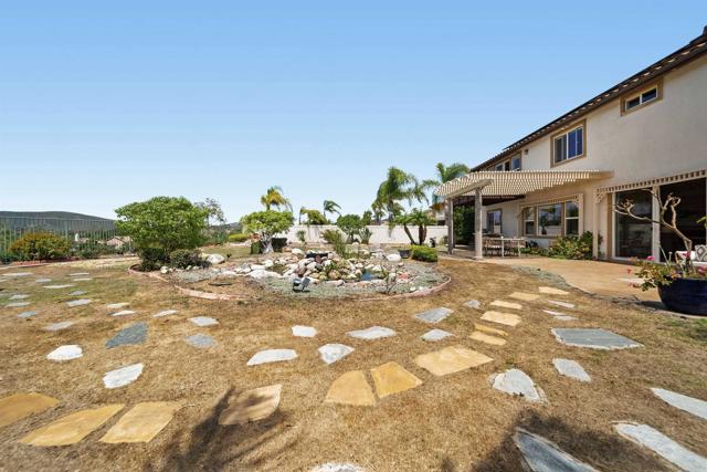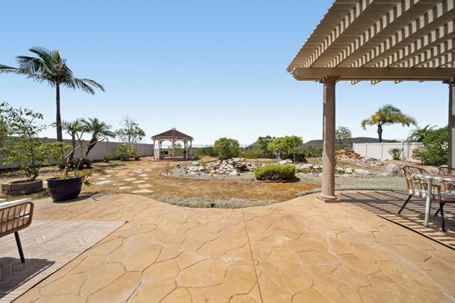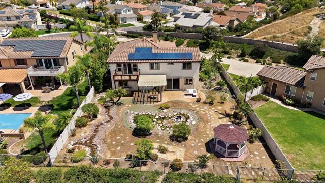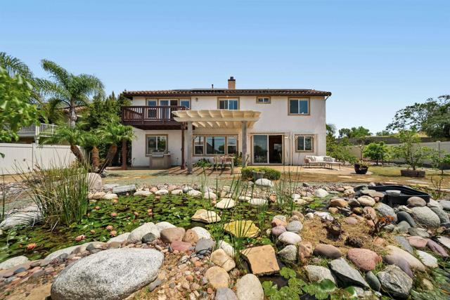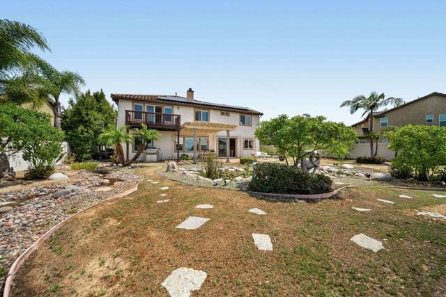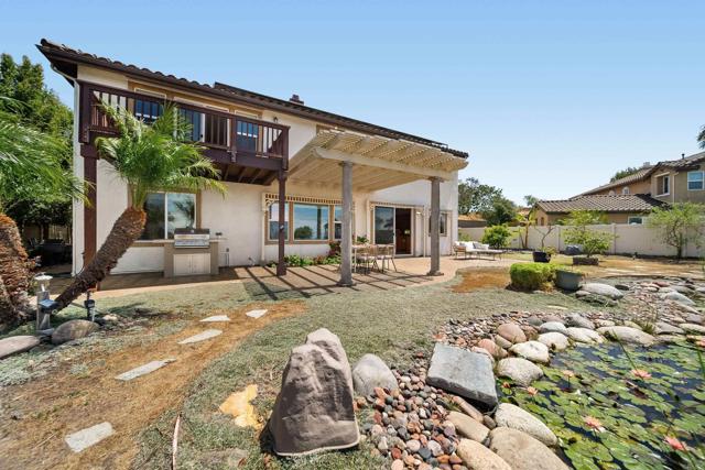 Rare opportunity to own an exceptional home with owned solar on a premium lot where privacy, space, and stunning views come together. Step inside where abundant natural light enhances the spacious open floor plan designed for both everyday living and convenience. The main level features a grand entry that opens to formal living and dining areas, a chef’s kitchen overlooking the oversized family room and picturesque views, plus a sought after first floor bedroom with a full bathroom that is ideal for guests or multigenerational living. Upstairs offers a versatile loft, two generously sized secondary bedrooms, and a tranquil primary suite complete with a private balcony to take in the panoramic views. Tucked away on a quiet cul-de-sac in the coveted Olive Hills Estates, the true highlight of this residence is the extraordinary oversized backyard with no rear neighbors and sweeping mountain views. This private oasis features custom ponds, cascading waterfalls, mature landscaping, fruit trees, and expansive open space that offers a rare sense of serenity with endless possibilities for a future pool, outdoor kitchen, or additional entertaining areas. Additional highlights include a 3 car garage and long driveway with ample parking. Ideally located near parks, scenic trails, shopping, dining, top-rated schools and colleges, and all the best of the thriving San Marcos community.