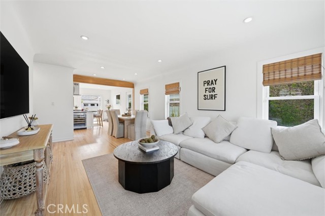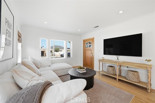 Filled with natural light and an easy coastal charm, this single-story home welcomes you in with an open floor plan, original hardwood floors, and timeless arched architectural details that give the space warmth and character. The living, dining, and kitchen areas flow seamlessly together and out to an oversized backyard deck, creating a layout that feels both connected and effortless, whether it’s a quiet morning at home or a full evening of entertaining. Step outside and everything softens. The backyard has an immediate sense of calm, with a lush, private setting that invites you to slow down and stay awhile. A large grassy lawn, mature avocado tree, and vibrant bougainvillea frame the space, offering the perfect backdrop for weekend gatherings, kids playing barefoot in the grass, or relaxed afternoons that turn into long, golden evenings. Inside, the home continues to feel bright, open, and thoughtfully laid out. Three well-sized bedrooms sit along the hall, leading to a spacious primary suite designed as a quiet retreat, complete with a large walk-through closet and sliding glass doors that bring in beautiful natural light. Adding to the flexibility of the property, a detached, remodeled ADU creates a space that can evolve with you, ideal for guests, a home office, or a creative studio. A full-size finished two-car garage and additional storage shed provide ample space for parking, storage, and everything that comes with an active coastal lifestyle. Set in a location that makes everyday living easy, you are just moments from the beach, local dining, shopping, and essentials like Trader Joe's. This is a home where comfort, charm, and lifestyle come together, offering a space that feels as good as it looks and lives even better over time.