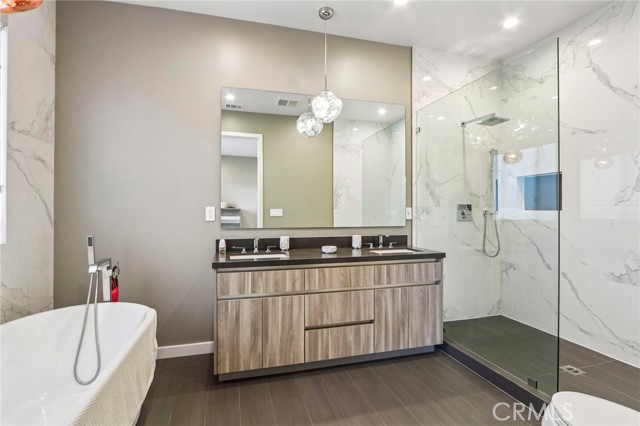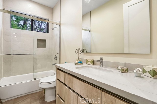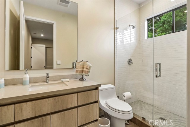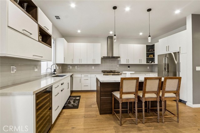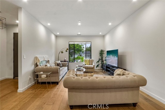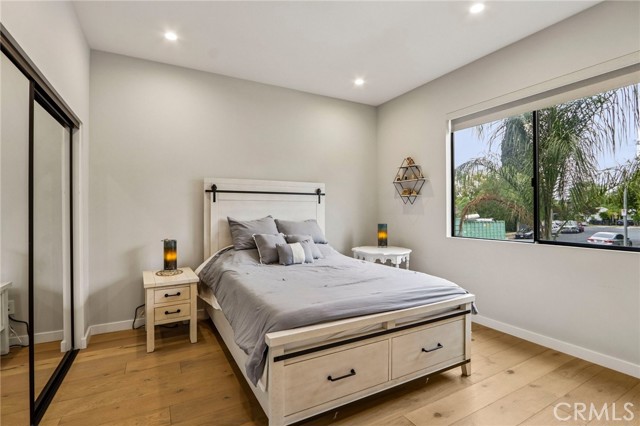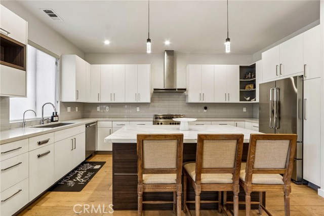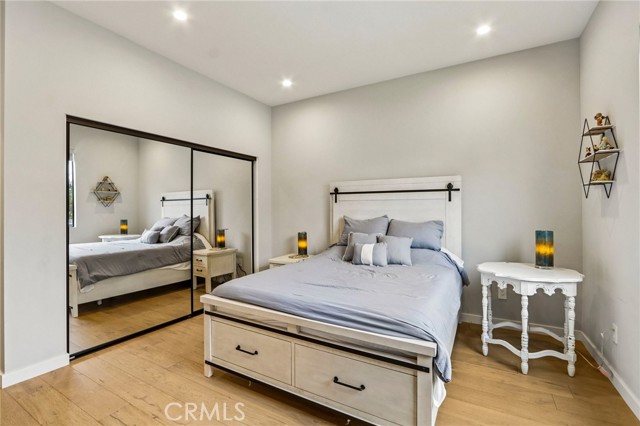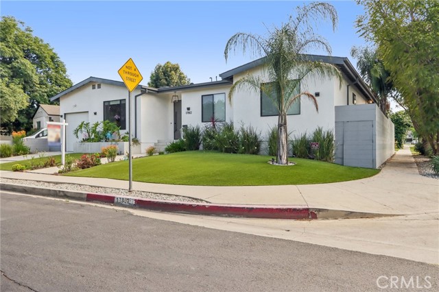 Stunning single story home completed in 2018, offering the quality and craftsmanship of newer construction with modern design and high-end finishes throughout. Originally taken down to the foundation and rebuilt, this home is far from a typical remodel, delivering a true custom feel with thoughtful attention to detail. Featuring 4 bedrooms and 4 bathrooms across approximately 2,300 square feet, the home showcases high ceilings, an open concept layout, and wide plank wood flooring that create a bright and expansive living environment. The spacious living and dining areas flow seamlessly into a designer kitchen equipped with a large center island, quartz countertops, custom cabinetry, and premium appliances, ideal for both everyday living and entertaining. The primary suite offers a private retreat with generous space, a large walk in closet, and a well appointed bathroom. Throughout the home, custom lighting and modern finishes enhance both style and functionality. The exterior features a smooth Santa Barbara stucco finish and exceptional curb appeal, while the backyard is designed for true indoor outdoor living. Enjoy a private, low-maintenance setting with Trex decking, custom paver hardscape, multiple seating areas, and a covered patio with skylights perfect for relaxing or hosting guests year round. Additional highlights include owned solar, smart home features, and a one-car garage. Located on one of the most desirable streets in the neighborhood, this home offers a rare combination of design, comfort, and efficiency. A move-in ready opportunity that stands out from the rest.