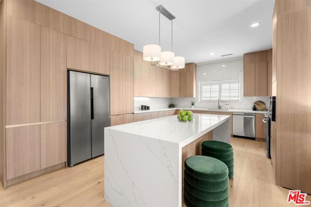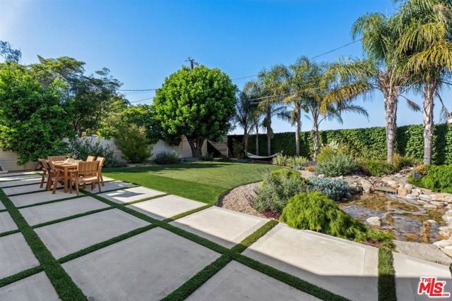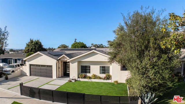 This stunning 4-bedroom, 4-bath home blends luxury, comfort, and functionality, featuring two primary suites and an open-concept layout ideal for living and entertaining. The gourmet kitchen includes marble countertops, a large island, and high-end finishes, while the living room is enhanced by a cozy fireplace. Indoor-outdoor living provides natural light and creates an harmonious environment . The main suite offers a walk-in closet and a marble en suite with dual vanities. Set on a spacious 9,500+ sq. ft. lot, the backyard features a tranquil pond, fire pit and gazebo perfect for outdoor living. Additional highlights include a versatile den, two EV chargers, installed solar panels, and smart home features. Conveniently located near LAX, great schools, Playa Vista, and the ocean, this home offers modern living with coastal charm.