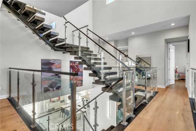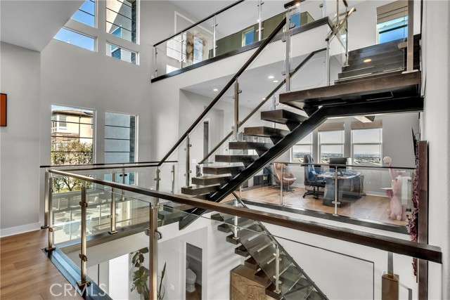 Modern Luxury Meets Elevated Design in this stunning Toll Brothers home located in the desirable Westridge collection within the gated Metro Heights community. Positioned on a premium homesite, this three-story residence showcases sleek contemporary architecture, panoramic views from every level, and over $400,000 in premium upgrades and enhancements. Step inside to experience an open-concept floor plan featuring dramatic floating stairs with glass railing, expansive living spaces, and an abundance of natural light. The interior has been beautifully upgraded with custom tile flooring downstairs and real wood flooring throughout the home, creating a warm yet sophisticated feel. The chef’s kitchen is a true showpiece with premium JennAir appliances including a 48” gas range, built-in refrigerator, oversized island with Quartzite Blue Tahoe countertops, modern white acrylic cabinetry, and a stylish full-height backsplash. Designed for both comfort and entertaining, the spacious multi-level layout offers flexible living areas ideal for multigenerational living, work-from-home needs, or hosting guests. The luxurious primary suite features spa-inspired finishes, upgraded shower design, premium Kohler fixtures, and private outdoor access. The backyard has been transformed with extensive custom hardscape and landscaping upgrades, creating a private outdoor retreat complete with a built-in outdoor kitchen—perfect for entertaining while enjoying breathtaking sunset, city light, and panoramic views. Residents of Metro Heights enjoy resort-style gated community amenities including Olympic-sized pools, parks, a state-of-the-art clubhouse, and a fully equipped fitness center/gym, offering an elevated lifestyle just beyond your front door. Additional highlights include solar, upgraded interior doors, polished chrome hardware, epoxy garage flooring, private balconies/decks, and designer-selected finishes throughout. Located within one of the area’s premier gated communities, this exceptional residence offers luxury, privacy, style, and unforgettable views rarely found in today’s market.