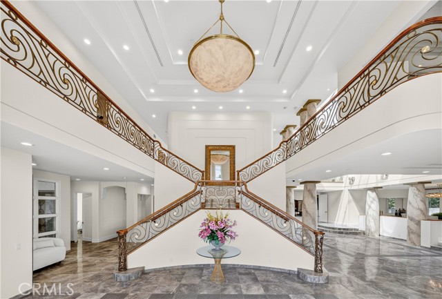 Located in the prestigious Upper Rancho area of Arcadia, this contemporary estate sits on a prime south-facing lot. A grand foyer with 35-foot ceilings and dual staircases leads to a stunning two-story library and expansive living areas. Spanning 12,436 sq. ft., the home features 7 bedroom suites, a gourmet kitchen, and solar power. The resort-style grounds offer a pool, spa, and putting green. A standout feature is the rare subterranean 7-car garage. Solar system. Perfectly situated within 10 minutes of Santa Anita Park, Westfield Santa Anita, and the LA County Arboretum. Situated within the top-rated Arcadia School District