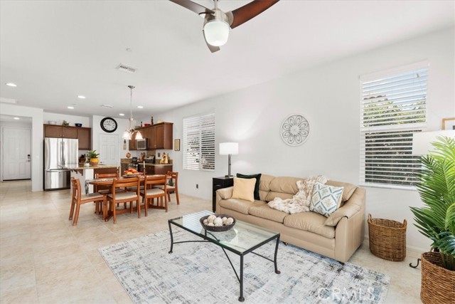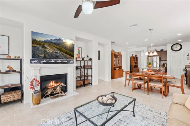 Welcome to this Retreat Model in Four Seasons Beaumont. Located on a quiet street within walking distance to the main clubhouse, this home features a charming front porch area. Lovingly maintained by the original owner, this single-story home offers approximately 1,592 square feet with 2 bedrooms, 2 bathrooms, and a front den, with an open layout, lots of windows, and natural light that fills the main living spaces. The kitchen is thoughtfully designed with granite countertops, stainless steel appliances, a large walk-in pantry, and an island with seating, opening to the living and dining areas for an easy, comfortable flow. The living room centers around a cozy fireplace, creating a warm space to relax and unwind. In the backyard, the covered Alumawood patio becomes a natural extension of the homeāan inviting place to enjoy your morning coffee, spend a quiet evening, and take in the peaceful setting, with a peek-a-boo mountain view and the simple sounds of nature. The primary bedroom is generously sized, offering a comfortable retreat with plenty of room to settle in. The primary bath includes dual sinks, a spacious walk-in closet to help stay organized, and a separate shower. This floor plan places the second bedroom in its own area off the living room with a nearby guest bath, giving visitors their own space and a sense of privacy. The front den is a wonderful space for a TV room, a quiet library, or a home office. The indoor laundry room includes a sink and additional storage, making everyday tasks a little easier. The garage offers added storage with built-in cabinets. Four Seasons is a gated 55+ community known for its quiet surroundings, strong sense of community, and well-maintained amenities. Residents enjoy peaceful walks through the natural preserve and walking paths, along with access to three clubhouses, indoor and outdoor pools, a restaurant, fitness centers, pickleball courts, and lighted tennis courts. Plus, the wonderful Dog Park! The outdoor amphitheater and summer concert series offer a relaxed place to gather, unwind, and meet your neighbors.