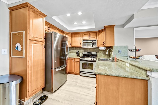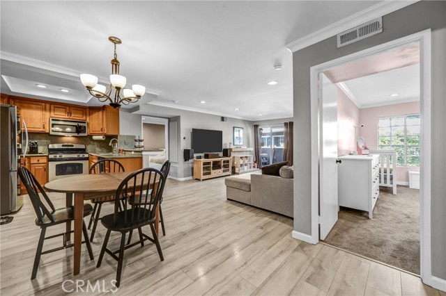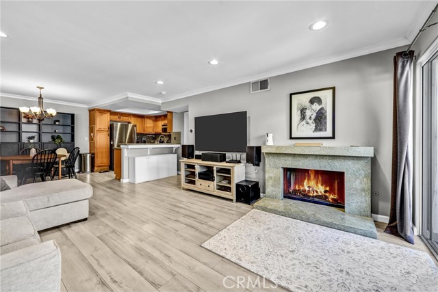 Light, bright, and inviting, this beautifully maintained 1,021 sq. ft. condo is located in the highly sought-after Keswick Villas community. The spacious layout features two large bedrooms, including a primary suite with its own ensuite bathroom, while the secondary bedroom is conveniently located next to a full bathroom; ideal for guests or family. The fully equipped kitchen offers stainless steel appliances, modern cabinetry, and upgraded countertops. Notably, the dishwasher, refrigerator, washer, dryer, and central A/C have all been replaced within the last six years, adding valuable modern updates throughout the home. Additional highlights include wood-like laminate flooring in the living room, recessed lighting throughout, and a full-sized laundry room inside the unit with built-in shelving and a linen closet. The unit also includes two assigned tandem parking spaces. Step outside to your private balcony overlooking the community, or go downstairs and enjoy resort-style amenities including a sparkling pool and in-ground spa. Ideally situated on a charming tree-lined street, this home is just moments from shopping, dining, and everyday conveniences. Please note: The owner believes the fireplace is in working condition but has never personally used it, and all images featuring the fireplace have been digitally enhanced.