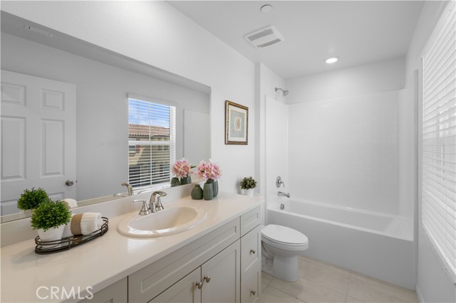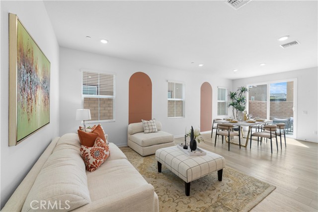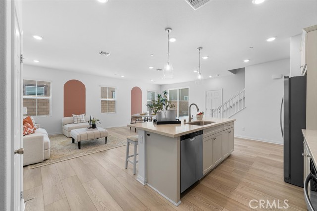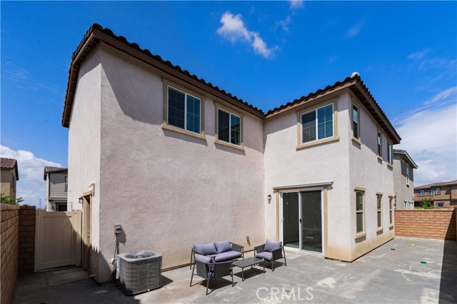Paid off Solar!!!! Located at 3918 E Cambria Privado in Ontario, this beautifully maintained 2023-built home offers a perfect blend of modern design, comfort, and true move-in-ready convenience. The first floor features a highly desirable open-concept layout where the kitchen, dining area, and living room flow seamlessly together, creating a bright and expansive great room ideal for everyday living and entertaining. A thoughtfully designed first-floor bedroom with a full bathroom adds exceptional flexibility for guests, multi-generational living, or a private home office. Upstairs, the home continues to impress with two secondary bedrooms sharing a full bathroom, along with a spacious primary suite complete with a walk-in closet for enhanced privacy and comfort. An exceptionally large loft—larger than the primary bedroom—offers endless possibilities as a second living area, media room, or entertainment space. The upstairs laundry room eliminates the inconvenience of carrying laundry up and down stairs and comes fully equipped with a washer and dryer. The home also includes a refrigerator, with all major appliances being 2023 models, delivering true turnkey living. The backyard has been fully finished with clean concrete hardscaping for a low-maintenance and functional outdoor space perfect for relaxing or hosting gatherings. Meticulously cared for and like new, this home is an outstanding opportunity for buyers seeking a modern layout, premium condition, and effortless living.