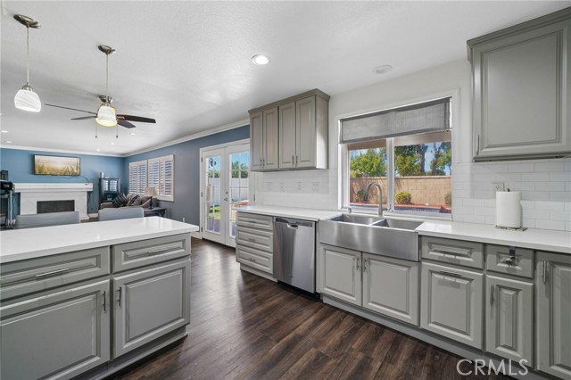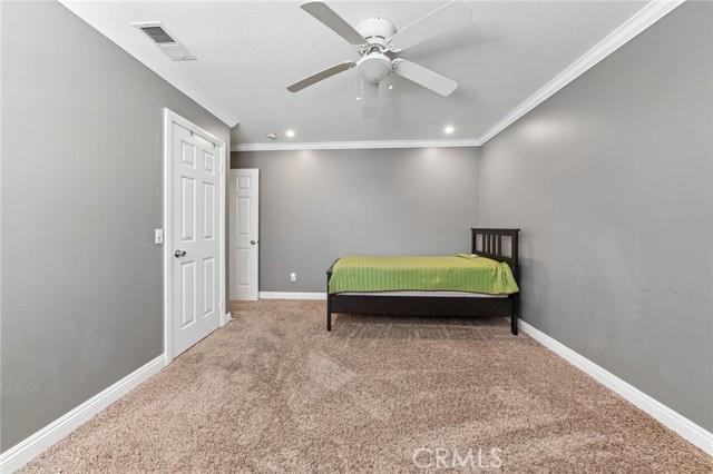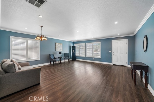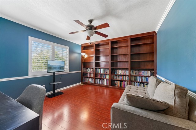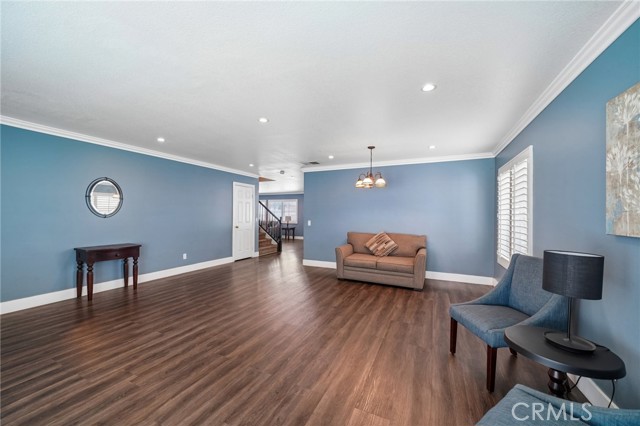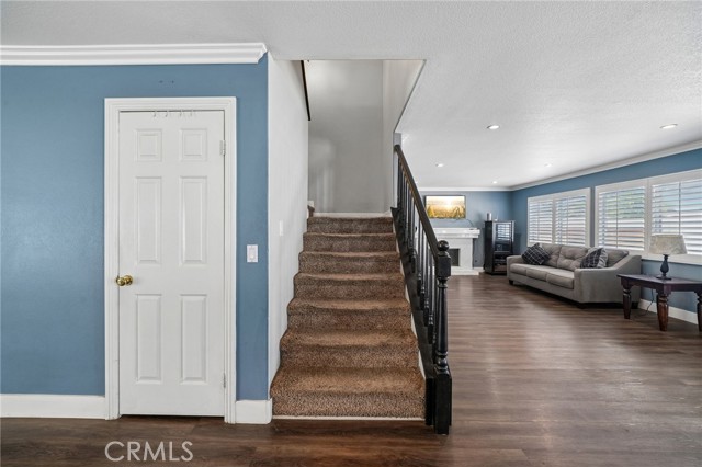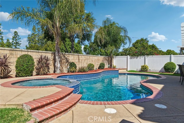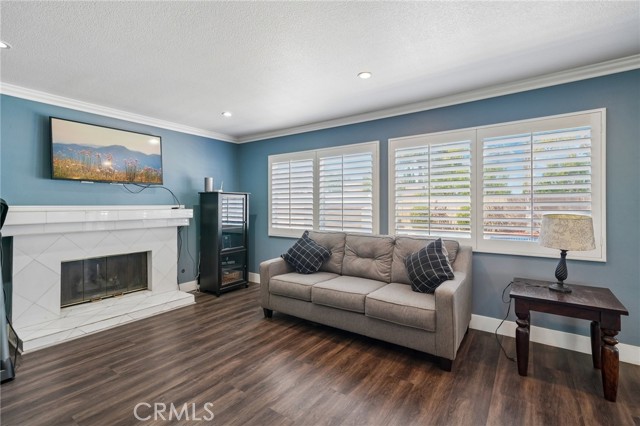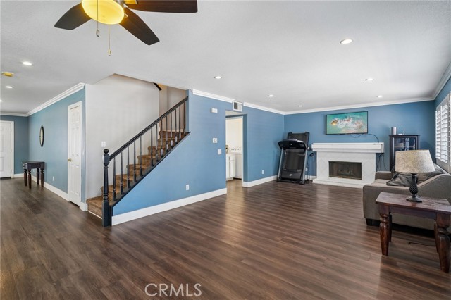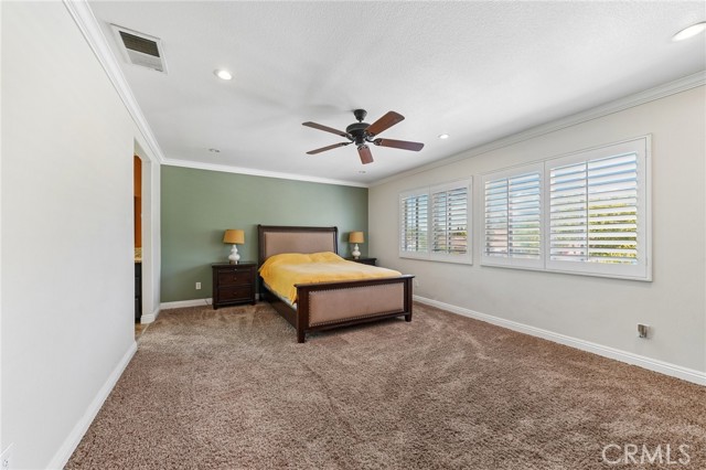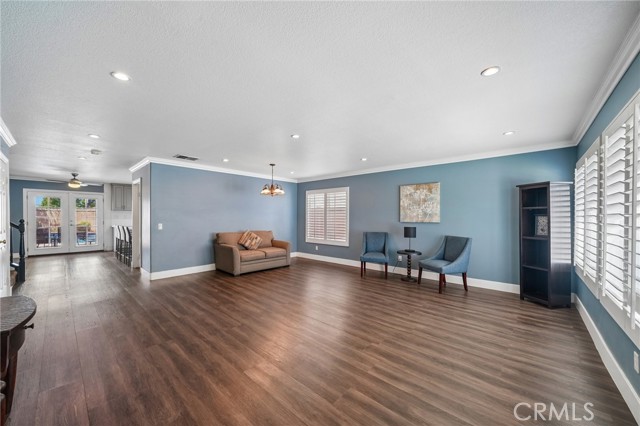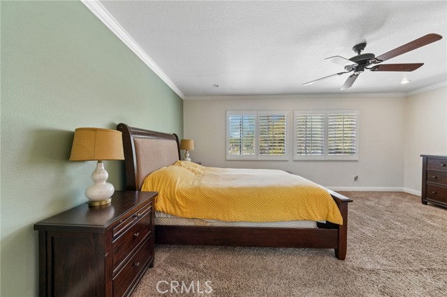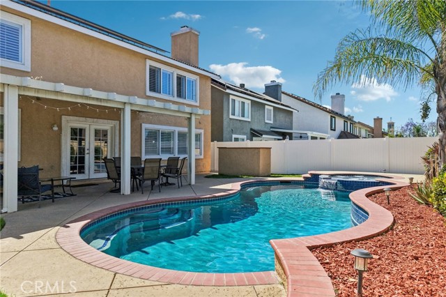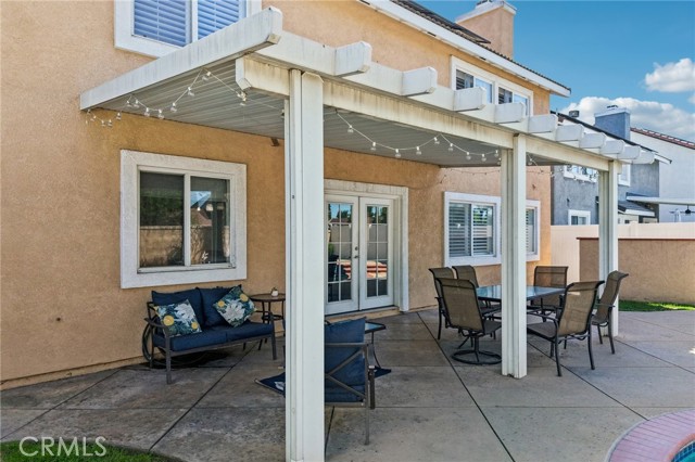 Move-in ready 4-bedroom, 2.5-bath home featuring shutters throughout, custom crown molding, and upgraded baseboards. The backyard is beautifully designed for entertaining, offering the perfect space for gatherings and relaxation. This home includes a newer HVAC system, newer water heater, fresh exterior paint, and a newer garage door with opener. Solar is also included for added energy efficiency. Conveniently located near freeways, schools, and shopping, this home combines comfort, style, and accessibility.