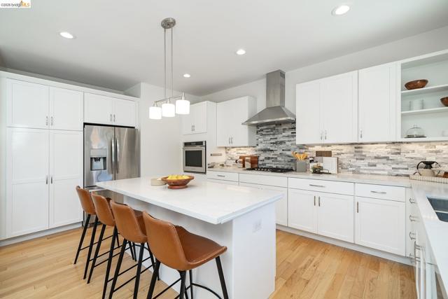 A 1910 Craftsman Reimagined for Modern Living Step into a beautifully reimagined 1910 Craftsman where timeless Berkeley charm meets cutting-edge convenience. This masterfully remodeled, tech-forward 5-bedroom, 3.5-bath home (one bedroom converted into a luxury walk-in closet) offers approx. 2,382 sq ft of bright, open living space on a 3,600 sq ft lot. Every detail is curated for comfort, sustainability, and ease. Premium smart-home features include Owned Solar, Nest thermostat, Ring cameras, Schlage smart locks, and electronic window shades. Energy Star appliances and lighting, low-flow fixtures, enhanced insulation, and high-performance windows support efficiency and lower utility costs. The contemporary kitchen with solid-surface counters, gas range, and breakfast bar flows into flexible living, family, dining, and bonus spaces ideal for work, play, or multi-generational living. Radiant heat, hardwood and tile floors, a second side entrance, and no-step entry to the main level add everyday comfort and versatility. Outdoors, relax in the large hot tub, entertain on the patio, and enjoy low-maintenance front and back yards plus off-street parking. In Berkeley’s desirable Ocean View neighborhood with a WalkScore of 96 and BikeScore of 100, you’re moments from Fourth Street shops and dining with easy freeway access—historic character, fully updated for modern life. Energy score of 7.