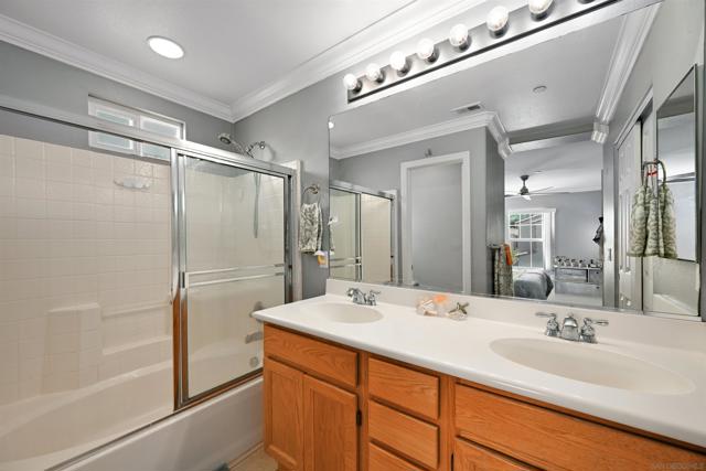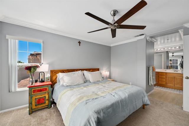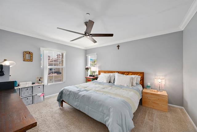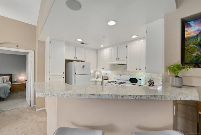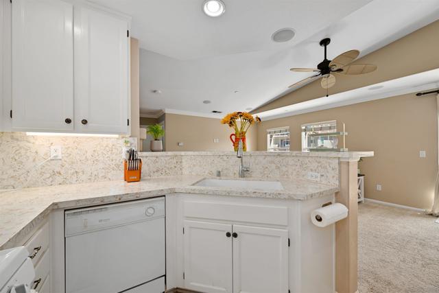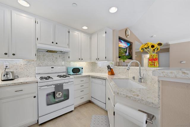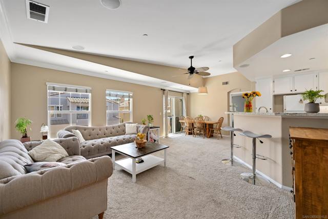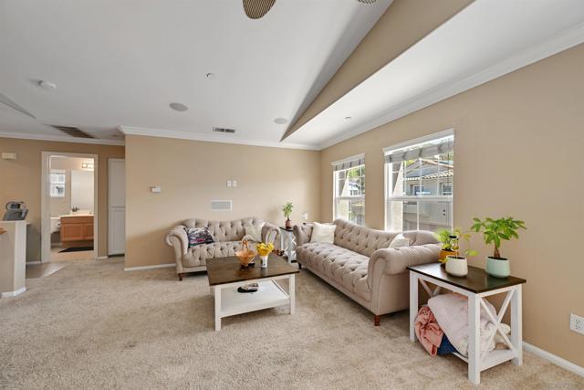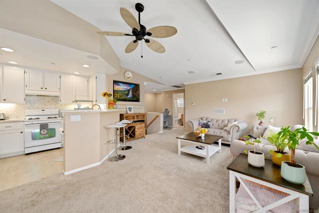Top-floor end unit in the gated Campana at Rancho Coronado community — move-in ready with quality upgrades throughout. The renovated kitchen features quartz countertops, a designer backsplash, recessed lighting, and a breakfast counter that opens to the living area, making it ideal for both everyday living and entertaining. Vaulted ceilings, generous windows, and fresh custom paint create a bright, airy feel throughout the home. Comfort-focused updates include central A/C, ceiling fans, a new gas water heater, and built-in surround sound. A versatile loft nook at the top of the stairs works perfectly as a home office or reading retreat. The primary suite offers a walk-in closet and en-suite bath, while split-bedroom positioning on opposite sides of the great room delivers added privacy. The attached one-car garage houses the washer and dryer with built-in shelving for additional storage. Community amenities include a pool, spa, recreation area, and tot lot. Conveniently located near top-rated schools, shopping, dining, parks, and major commute routes.