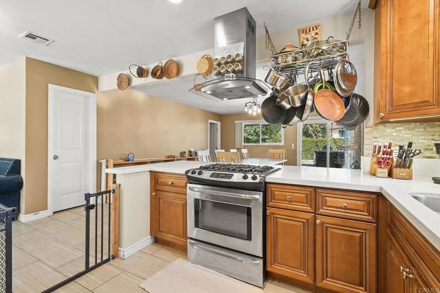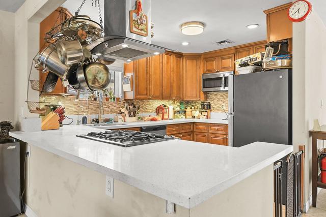 This your opportunity to live in a single story 3 bedroom home and let the permitted ADU pay you back! With solar panels and energy efficient features like a tankless water heat and mini-split system in the ADU, this home with big living spaces could be perfect for you. This home was remodeled in 2016 and upgrades have continued... tile backsplash in the kitchen, modern ceiling fixtures and a completely remodeled primary bathroom in 2024. Complete with a 6-foot soaking tub and separate shower, vessel sink and designer tile on the walls, you will have an oasis after a busy day. The primary closet is very big, with double rods and room for storage. The dining room with a real wood fireplace is warm and inviting. The ADU, built with permit in 2024, is up a private staircase inside a private yard. The complete kitchen has a sit-up island and great storage. The ADU comes with an all-in-one washer/dryer, with room for separate units. Nice and bright with good air flow, there is a mini-split unit in both the living area and bedroom. The back yard for the main home is landscaped and has a sit-up fire table and built-in BBQ island ready for making memories! Come see this property to understand its potential.