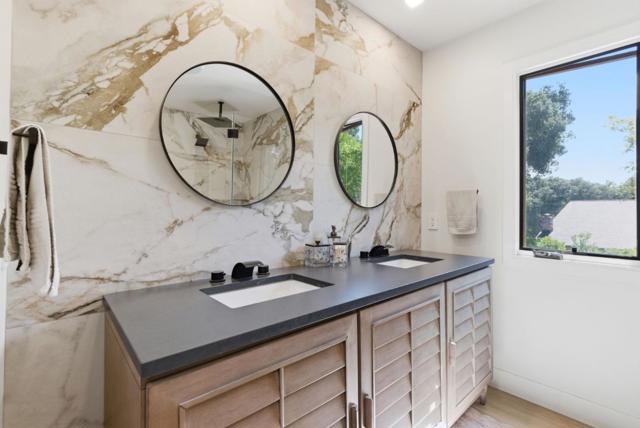 Perched in coveted Holiday Lake Estates, this 'gorgeous-like-new' custom remodel captures sweeping panoramic views of the Diablo Range and Coyote Creek canyon from the moment you arrive. Designed for luxurious comfort living, the home offers an easy flat entrance to the main level where the primary living spaces and one of three spacious ensuite bedrooms are thoughtfully located. Light, bright interiors and expansive windows bring the outdoors in and frame the stunning vistas throughout. The great room is a striking expression of modern sophistication, featuring soaring vaulted ceilings and open-concept design that seamlessly connects the Chef's kitchen, dining, and living areas. Quartz and Dekton countertops and an oversized kitchen island add a refined, designer edge, while the light-filled spaces feel both expansive and intimate at once. Just off the main living level, the outdoor setting is an exceptional extension of the home an entertainers dream with expansive view decking and a fully equipped outdoor kitchen featuring a built-in BBQ, grill top, pizza oven, and beer tap, designed for effortless hosting and elevated gatherings. Owned solar adds efficiency and value. Only minutes to town, easy access to dining, shopping and Silicon Valley commute routes. Love where you live.
