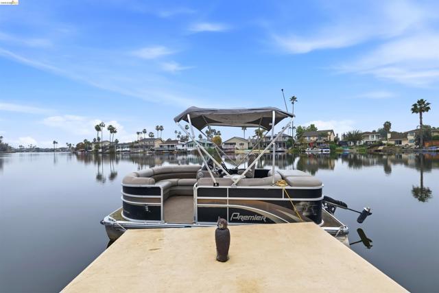 This gorgeous home blends the active Discovery Bay lifestyle seamlessly with the peace and serenity of Willow Lake! This popular floor plan is lovely both inside and out. Low maintenance landscaping provides more time for relaxing with friends or family on the sprawling deck or spending time in the lake! High ceilings upon entry allow lots of light into the formal living and dining areas, plus a cozy fireplace adds warmth and ambiance for our chillier winter evenings. Beautiful eat-in kitchen has stunning cabinets, granite countertops and up-to-date, newer S/S appliances. The kitchen has sliders out to the deck and overlooks the spacious family room, making entertaining a snap! The family room has a second beautiful fireplace as well as large sliding doors to the completely covered deck. This level also boasts one bedroom and full bath plus laundry room- great for multi-generational living! Upstairs, find three more bedrooms, including the roomy primary suite, which has its own private balcony with captivating lake vistas. Beautifully updated bath has lots of light and a terrific shower with multiple shower heads- so relaxing! A large walk-in closet completes this lovely space. As always, the outdoor spaces are so important for outdoor living and playing! Fully covered deck makes enjoying the outdoors possible in all four seasons! Extra storage exists under this home for storing all the toys! Large dock provides plenty of room for manual or electric watercraft! This home has fully paid solar for added savings! So much care has been given to this home, along with a motivating price- See it very soon!