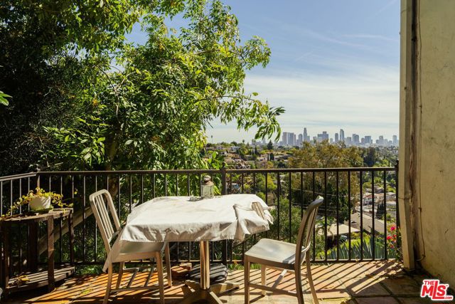 VIEWS for days! Perched above the hills of Silver Lake, this spectacular 1926 Spanish-style home showcases jaw-dropping panoramic views of Silver Lake, Downtown LA, and the surrounding mountains. A rare opportunity to own a this charmer in one of LA's most sought-after neighborhoods. The main residence features 2 spacious bedrooms and 1.5 bathrooms, filled with character, charm, and original architectural details throughout. A private balcony captures jetliner views that stretch across the city skyline, creating the perfect setting for morning coffee or evening sunsets. Inside, natural light pours in throughout the day, creating a warm and inviting ambiance. The formal living room features a romantic decorative fireplace, arched hallways, and timeless built-ins that reflect the home's original character. The clean and inviting interior offers an open and comfortable floor plan, with a spacious living room, dining area, and well-sized kitchen designed for both everyday living and entertaining.The SECOND UNIT is a separate studio with its own kitchen, bathroom, and private lower deck, also enjoying stunning views, Ideal for guests, rental income, or a creative workspace. This storybook 1926 Spanish home blends historic charm with the relaxed lifestyle that defines Silver Lake living. Original details throughout tell the story of nearly a century of Los Angeles history.Located just minutes from the Silver Lake Reservoir, dog park, Botanica, LaMill Coffee, and many of the neighborhood's favorite cafe's, restaurants, and sunset hangouts, this home offers the perfect balance of tranquility, character, and city convenience.A true Silver Lake gem with unforgettable views- must see!