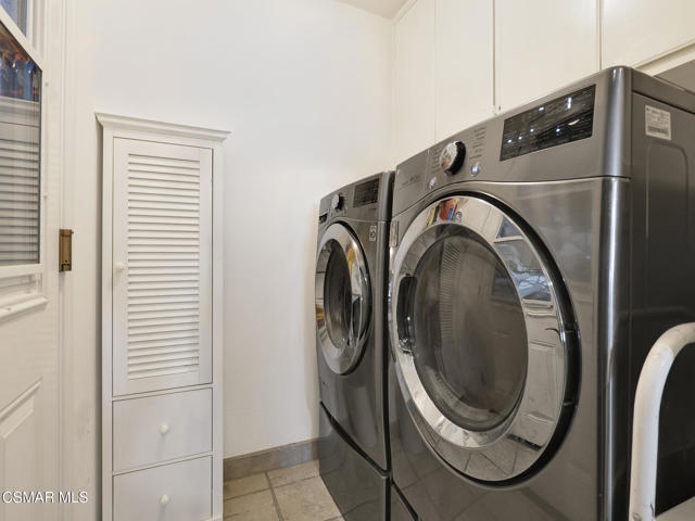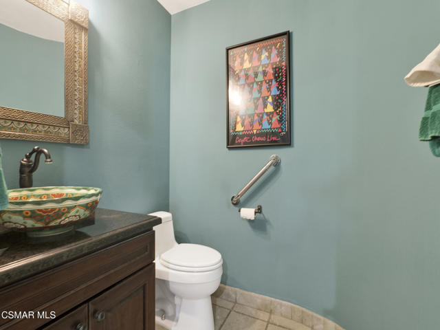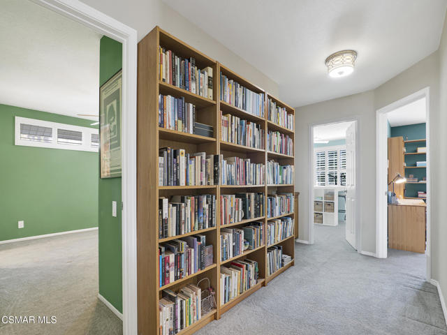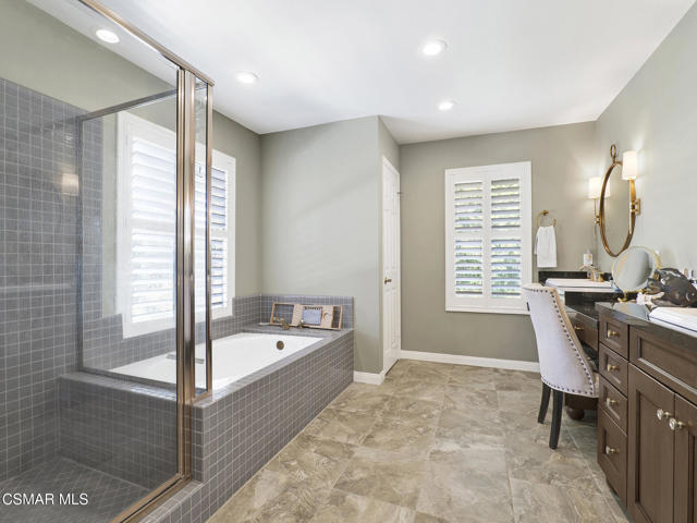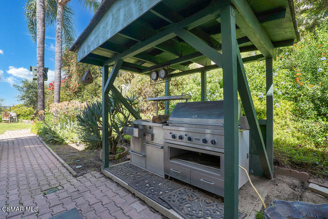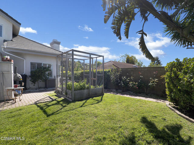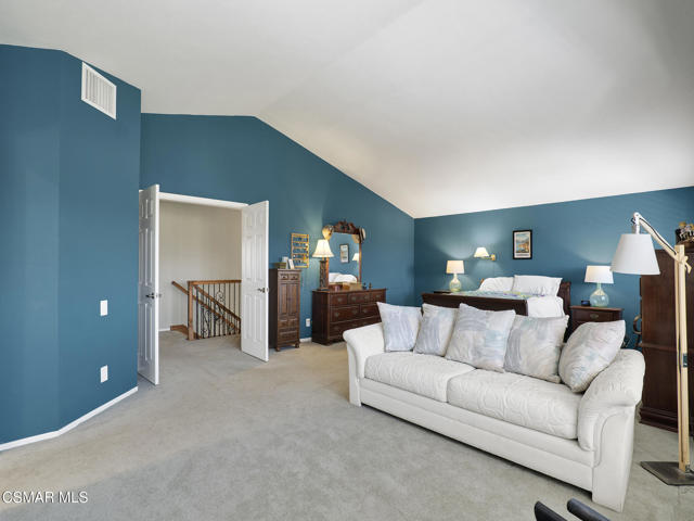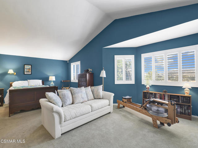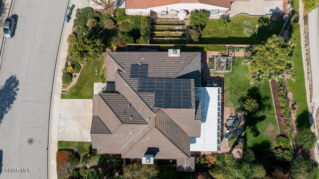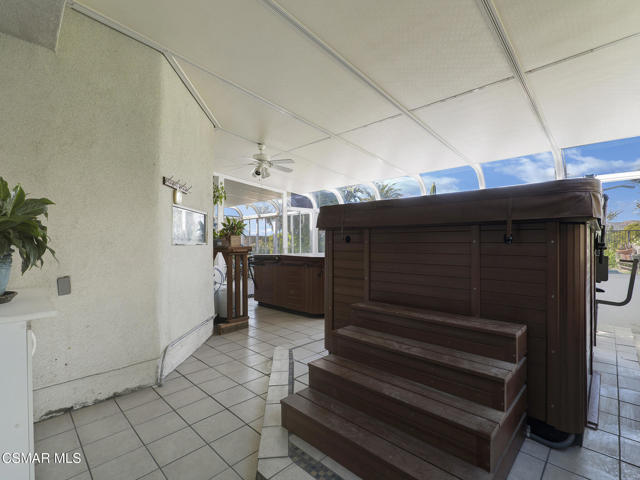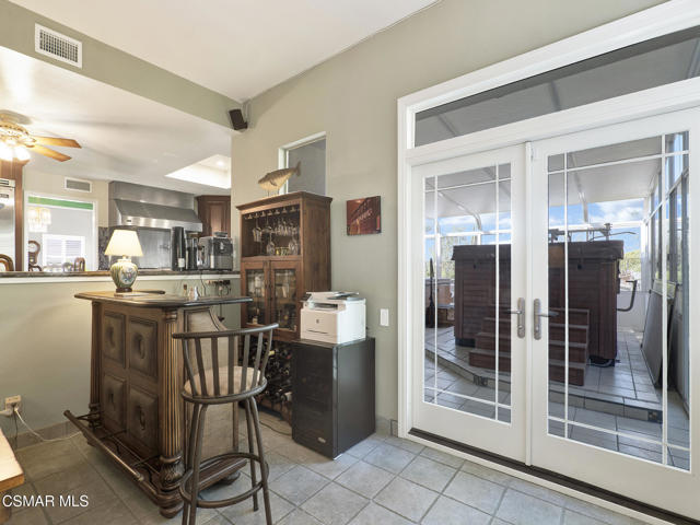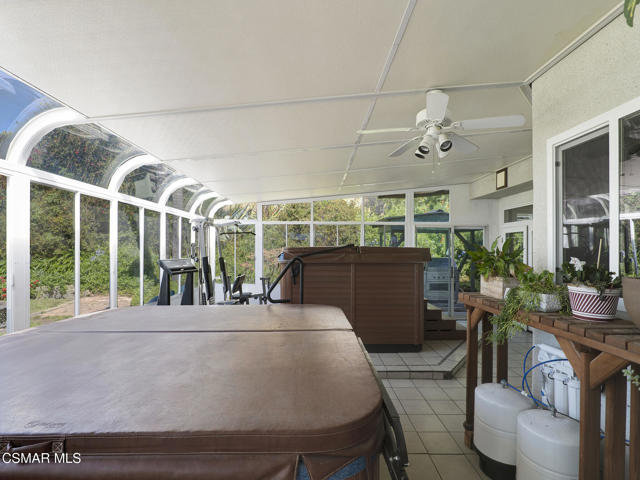 Set within the Buttercreek Estates neighborhood in Moorpark's desirable Mountain Meadows area, this 2-story home offers 5 bedrooms, 4.5 bathrooms, 3,603 sq. ft. of living space on a 13,155 sq. ft. lot, with multiple living areas, a main-level bedroom, and a backyard positioned to showcase views across Moorpark. A landscaped front yard maintained by the HOA, mature rose bushes, and a concrete driveway create a welcoming approach. Double entry doors are framed by a stained-glass window above and a side window, opening to Italian tile flooring with a decorative inlay at the entry, while Italian tile continues through most of the downstairs. Just off the entry, a secondary bedroom with mirrored closet doors and access to a full bathroom offers flexibility for guests, multi-generational living, or a home office. Living and dining areas feature vaulted ceilings, a white gas fireplace, and windows that bring in natural light and backyard views. Italia Murano glass chandeliers are featured at both the entry and dining area, where a half wall defines the dining space with Italian tile flooring, marble inlay, and French doors connecting to the sunroom. Granite countertops and a center island--offering generous storage and a slide-out spice rack--anchor the kitchen, while an L-shaped counter defines the dining nook with a lighted ceiling fan. Separate built-in Viking refrigerator and freezer units sit side-by-side, along with a Viking 6-burner range plus a built-in griddle, double oven, pot filler, built-in ice maker, and newer dishwasher. A farmhouse-style stone sink is positioned beneath windows with stained glass accents on each side, overlooking the sunroom and backyard. A separate prep area includes a slide-out spice rack, a stainless sink, and etched glass cabinetry. Open to the kitchen, the family room features high ceilings, a lighted ceiling fan, and a stone fireplace with a detailed mantle. French doors lead into the fully enclosed sunroom, where tile flooring, surrounding windows, and multiple sliders bring in natural light and connect to the backyard--well-suited for a home gym, office, or additional living space. The sunroom is not included in the listed square footage, yet adds meaningful versatility to the home. Views across Moorpark and the wide-reaching Topatopa Mountains define the backyard setting--also enjoyed from the kitchen sink, offering a peaceful start to the day as the morning sun rises over the hills. Iron fencing lines the rear, with block walls on the sides for added privacy. A covered BBQ area with sink, paver patio, storage shed, and garden boxes are supported by mature landscaping and a 6-zone sprinkler system. Two spa units--one for exercise and one for relaxation--may be included in the sale. Upstairs, a landing connects three secondary bedrooms with mirrored closet doors and lighted ceiling fans. One secondary bedroom includes an en suite bathroom, while the hall bathroom with dual sinks and a tub/shower combination serves the remaining two bedrooms. The primary suite offers a double door entry, sitting area, pitched ceiling, and multiple windows. The en suite bathroom includes a granite vanity with makeup station, soaking tub, glass-enclosed shower, private toilet area, and a walk-in closet. All bathrooms throughout the home have been custom designed. Additional features include paid solar, a tankless water heater, plantation shutters, water filtration system, dual-pane windows with grids, wired for an alarm system, and Ring doorbell. The community pool is conveniently located just across the street, along with close proximity to Tierra Rejada Park, Arroyo Vista schools, and local shopping and dining. The HOA includes access to the association pool, spa, clubhouse, and BBQ area, along with front lawn maintenance and water for the front landscaping. This home comes with a fully paid-off solar system -- the sun works for you!