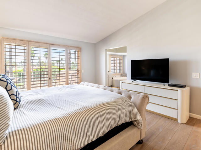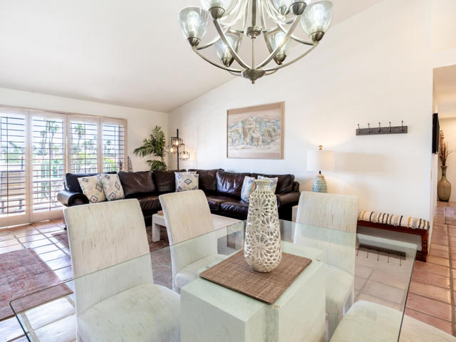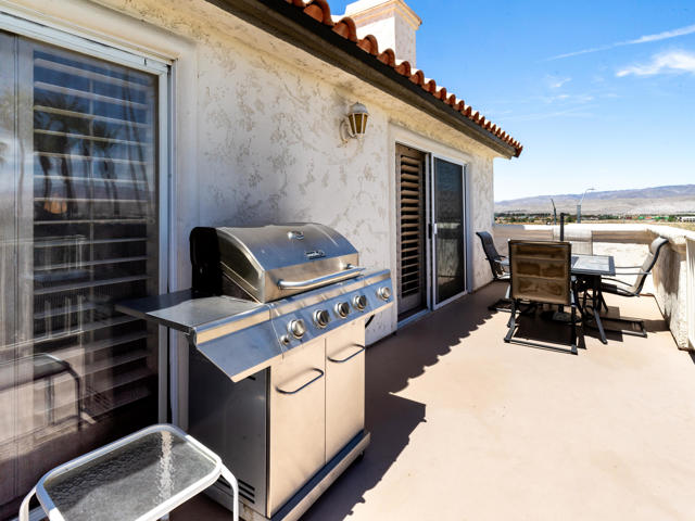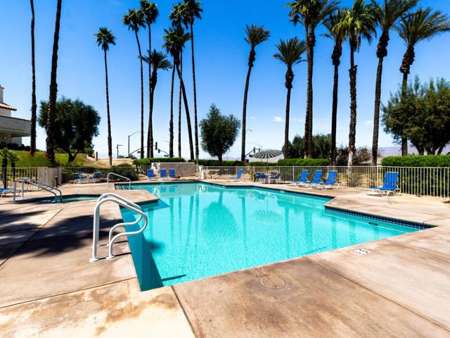 Welcome to Desert Falls Country Club! This upstairs 3-bedroom, 2.5-bath condo offers comfortable desert living in a gated community and comes turnkey furnished, making it move-in or rental ready. The home features vaulted ceilings, a cozy fireplace, stainless steel appliances, walk-in closets, beautiful Saltillo pavers, and shutters throughout for added style and privacy. Enjoy morning sun from the east-facing balcony overlooking the pool and unwind on the front patio with sunset views. The light, open layout is perfect for everyday living or entertaining. HOA dues include access to a state-of-the-art fitness center, tennis and pickleball courts, 30+ pools and spas, grounds maintenance, cable, and internet, with golf available by membership or pay-as-you-play. Conveniently located near shopping, dining, casinos, and Acrisure Arena, this property is ideal as a primary residence, desert getaway, or income-producing investment. Come experience easy desert living!