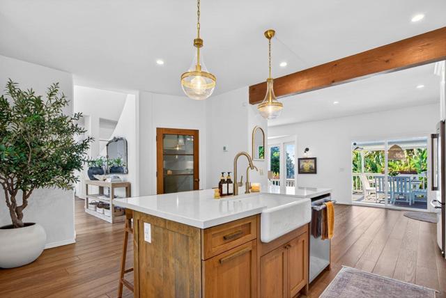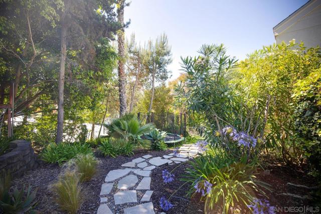 Set on an expansive half-acre lot in the heart of La Costa, this stunning custom estate offers a rare blend of design, privacy, and versatility. The home features 4 spacious bedrooms and 3 bathrooms, plus a fully permitted attached studio apartment with a private entrance, kitchenette, and full bath, ideal for guests, multi-generational living, or income potential. At the center of the home is a beautifully designed custom kitchen that flows seamlessly into the main living areas and out to the backyard, creating the perfect setting for entertaining or everyday living. Extensively updated throughout, the home boasts new flooring, fresh interior and exterior paint, new upstairs baseboards, a new garage door, refreshed bathrooms, a new security system, and lush privacy hedges. Dual HVAC systems with separate units for each level and fully paid solar for both the home and pool provide year-round comfort and efficiency. Inside, vaulted ceilings, floor-to-ceiling windows, oversized doorways, and custom built-ins fill the home with light and character. The backyard is a true private resort, featuring mature tropical landscaping, a sparkling pool with a 25-foot custom concrete water slide, fire pit, outdoor shower, zip-line with additional space to add a pickleball or sport court. Set on an expansive half-acre lot in the heart of La Costa, this gorgeous custom estate offers a rare blend of design, privacy, and versatility that is truly one-of-a-kind. The home features 4 spacious bedrooms and 3 bathrooms, along with a fully permitted attached studio apartment beautifully remodeled with a private entrance, kitchenette, and full bath - ideal for guests, multi-generational living, or income potential. At the true center of this magnificent home is the brilliantly designed custom kitchen, an absolute entertainer’s dream. Serving as the beating heart of the house, this culinary haven opens seamlessly to the expansive living spaces and flows directly out into the breathtaking backyard. Whether you are hosting a lively dinner party, keeping an eye on family activities, or simply enjoying your morning coffee while taking in the tropical views, this kitchen keeps you perfectly connected to the vibrant energy of the entire home and the outdoor oasis beyond. Extensively updated from top to bottom, the home shines with new flooring throughout, fresh interior and exterior paint, new upstairs baseboards, and a new garage door. Thoughtful upgrades continue with refreshed bathrooms, a new security system, and lush privacy hedges that create a true sense of sanctuary the moment you arrive. Dual HVAC systems with separate units for each level and fully paid solar, covering both the home and pool to ensure year-round comfort and modern efficiency. Inside, soaring vaulted ceilings and dramatic floor-to-ceiling windows flood the home with natural light, while over-sized doorways and custom built-ins speak to the architectural integrity woven into every detail. Step outside and discover your own private resort. Surrounded by mature tropical landscaping, the expansive grounds feature a sparkling pool with a 25 ft custom concrete water-slide, fire pit, and newly added outdoor shower for effortless indoor-outdoor living. The backyard has been thoughtfully reimagined and transformed into a true lifestyle destination - cleared, leveled, and outfitted with a zip-line and race track that make it an unforgettable setting for families and gatherings alike. With ample space remaining, there's incredible potential to add a pickle ball or full sport court, taking this outdoor experience to the next level.