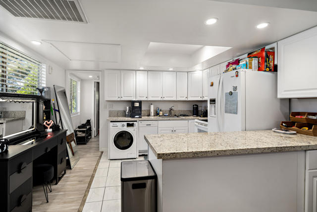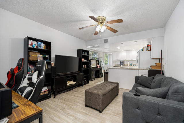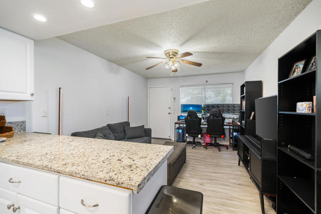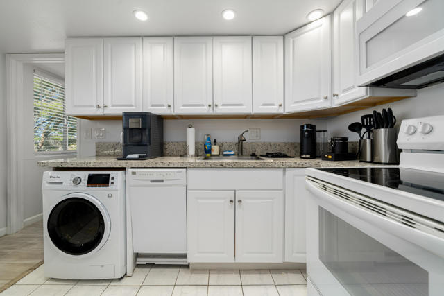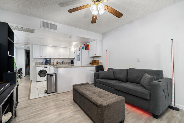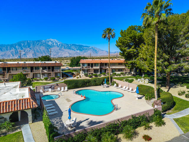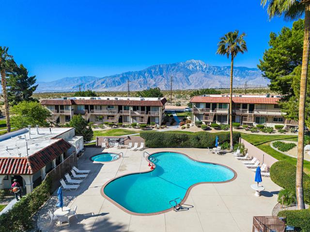 Experience true resort-style desert living in this beautifully remodeled 1 bedroom, 1 bathroom upper-level end unit condo located in the highly desirable Mission Lakes Country Club. Perfectly positioned to capture breathtaking panoramic mountain views, this light-filled home offers privacy, tranquility, and an elevated lifestyle. Step inside to a modern, move-in ready interior featuring stylish upgrades throughout, along with a new AC system and water heater for comfort and efficiency. Unlike many units in the community, this property includes its own in-unit washer and dryer, adding everyday convenience and value. Enjoy your morning coffee or unwind in the evening on your private balcony overlooking serene desert landscapes, where the views become part of your daily routine.As a resident of Mission Lakes Country Club, you'll have access to resort-style amenities, including unlimited golf for two on the Ted Robinson-designed 18-hole championship course, multiple pools and spas, a vibrant clubhouse, fitness center, and a full calendar of social activities. The HOA covers water, cable TV, internet, trash, and exterior maintenance, making this an ideal low-maintenance primary residence, vacation getaway, or income-producing investment property. Offering one of the best values in a Southern California golf course community, this condo delivers the perfect combination of lifestyle, location, and long-term potential. If you're seeking a desert retreat, golf lifestyle, or smart real estate opportunity, this move-in ready home is a must-see.