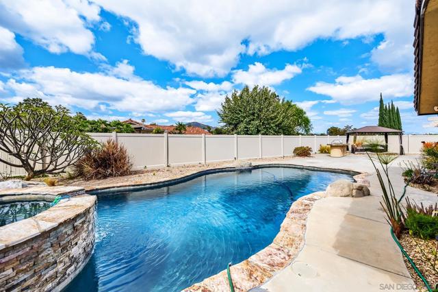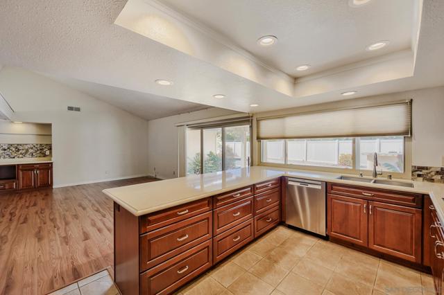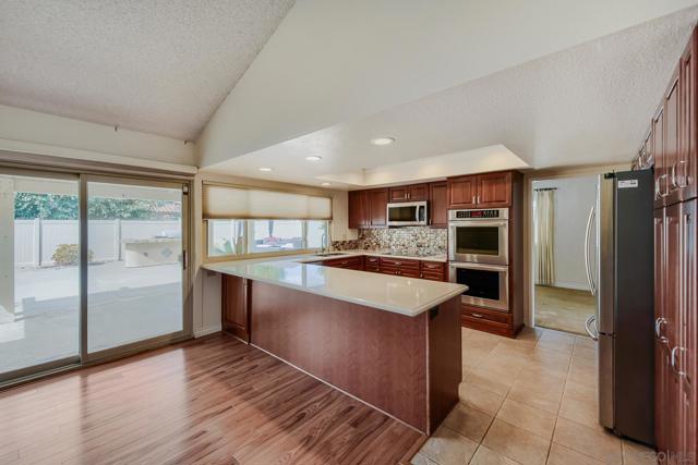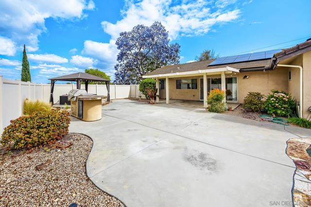This single level corner lot home features 4 bedroom 2.5 baths and is located in the desirable neighborhood of Del Cerro close to Lake Murray and highly rated schools. This entertainment style home has an updated kitchen with double oven and lots of storage. The large family room off of the kitchen has a vaulted ceiling. The primary bedroom and bath with double sink vanity have been recently updated. Also features a large walk-in closet. 2 other spacious bedrooms have walk in closets. The 4th bedroom is set up to be an office. There is a formal dining room off of the kitchen. Dual pane windows and sliders throughout. Inside laundry area and sink direct access from the garage. The private backyard is perfect for entertaining with the sparkling pool, barbeque area and sitting area in addition to the covered patio. And yes this home has SOLAR and will be paid off in escrow. Hurry to make this home your home!
