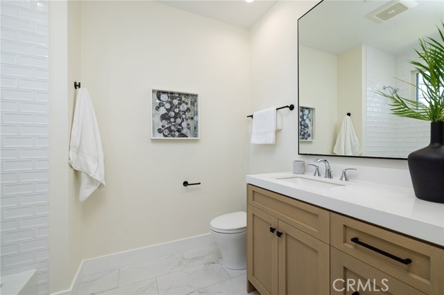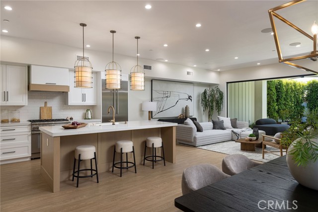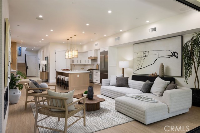 Recently completed and thoughtfully designed, this beautifully appointed residence in Costa Mesa’s sought-after Eastside offers the comfort of a single-family home with the ease of modern living. Showcasing a refined blend of contemporary and timeless finishes, the home reflects quality craftsmanship throughout. Spanning approximately 2,739 square feet, the open-concept floor plan is both functional and inviting. The main living area is anchored by a sleek linear fireplace and expansive accordion glass doors that create a seamless indoor-outdoor connection to the private backyard. The kitchen is designed for both everyday living and entertaining, featuring premium Thermador appliances, a large center island, custom cabinetry, quartz countertops, a walk-in pantry and an 86 bottle wine refrigerator- perfect for the avid entertainer. The flexible layout includes four bedrooms and four bathrooms, with a main-level bedroom ideal for guests or a home office. Upstairs, the primary suite offers a spacious walk-in closet and a well-appointed bath with dual vanities, a soaking tub, and separate shower. A loft-style bonus space adds versatility for a media room, office, or lounge. Additional highlights include owned solar, a two-car garage with epoxy flooring, Andersen windows, integrated speakers, and enhanced soundproofing. Designed for Southern California living, the home features a generous California Room and a private yard with low-maintenance landscaping. Ideally located near top-rated schools, parks, 17th Street dining and shopping, and the trails of Upper Newport Bay.
